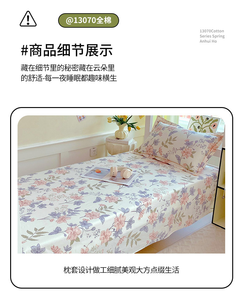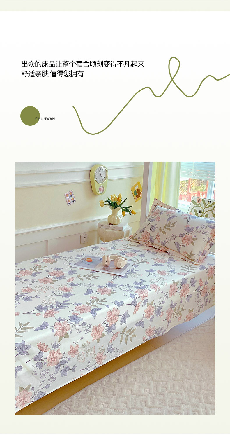 商品名称:春皖家纺 2025新款学生季全棉纯棉13070印花单床单 床单单件 花海之恋