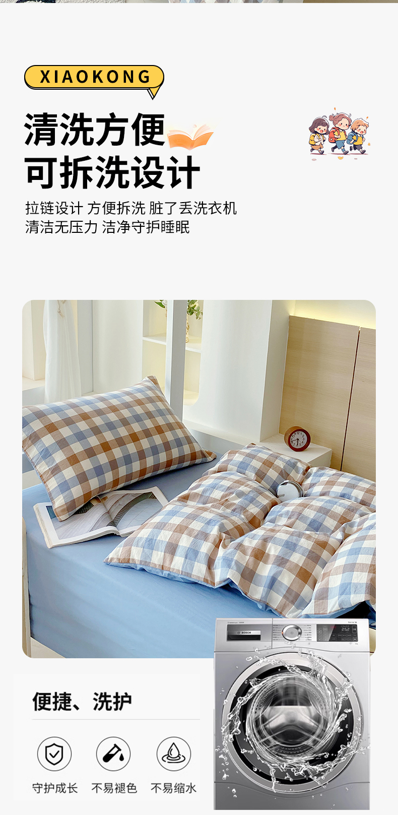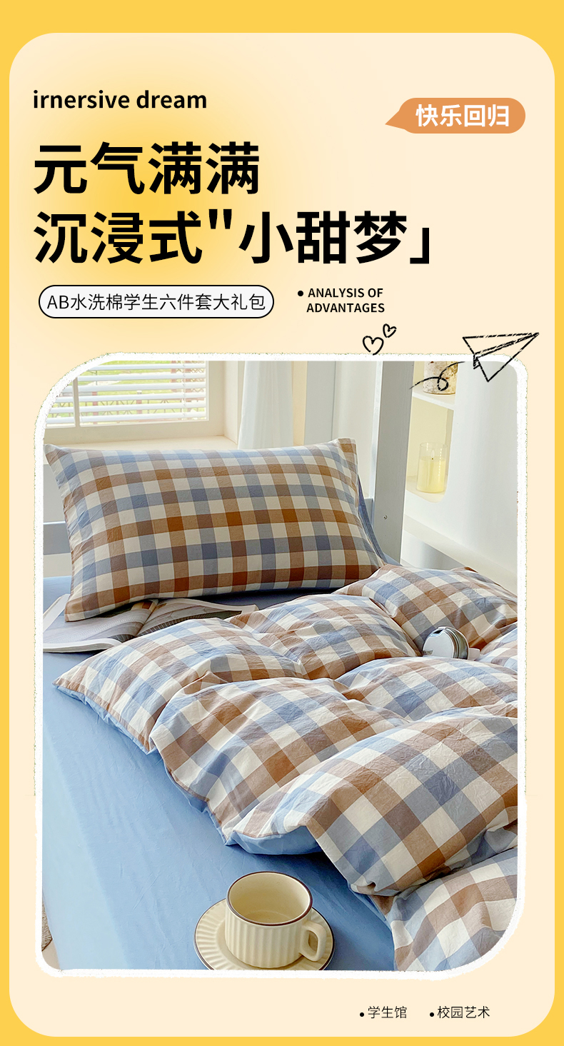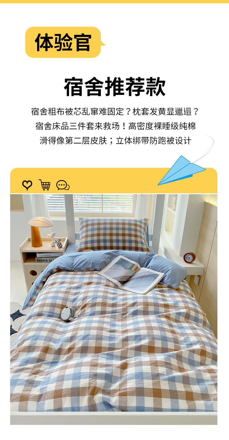 商品名称:(总)春皖家纺 2025新款AB棉全棉亲肤水洗棉学生三件套四件套