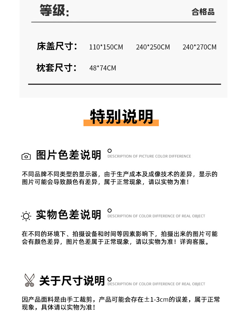 3、通州区市场监督局友情提醒,近期涉及到床上用品不褪色不掉毛不缩水的投诉和以世界知名品牌图案为面料的床品举报较多。请各商家自检自查,对照整改或进行下架处理。