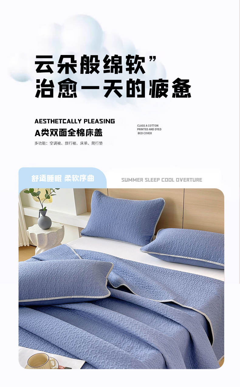 商品名称:春皖家纺 2025新款全棉多功能单床盖 床盖单件 艾迪-蓝