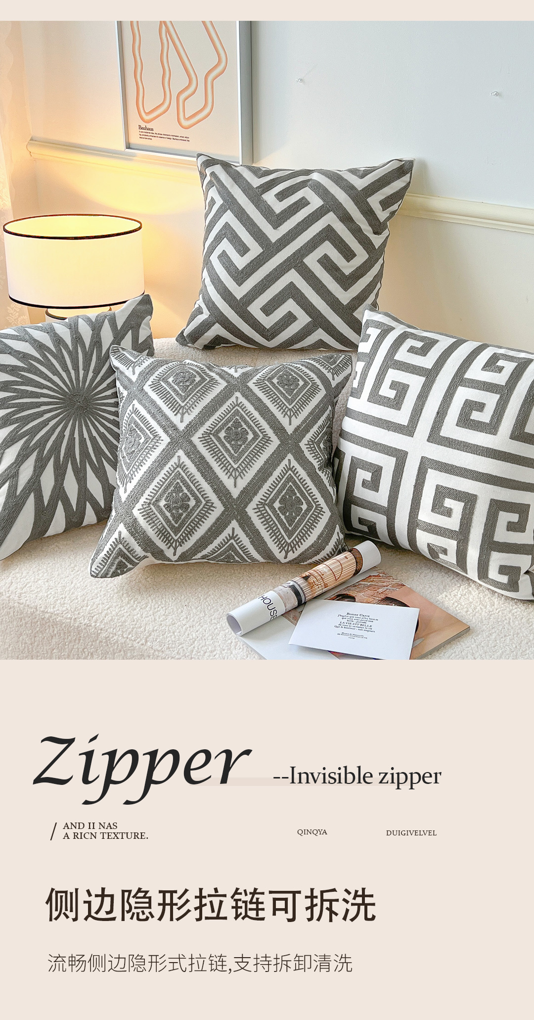 诺可 2025新款全棉毛巾绣抱枕外贸跨境电商直播纯色几何系列-灰色 灰-橄榄纹