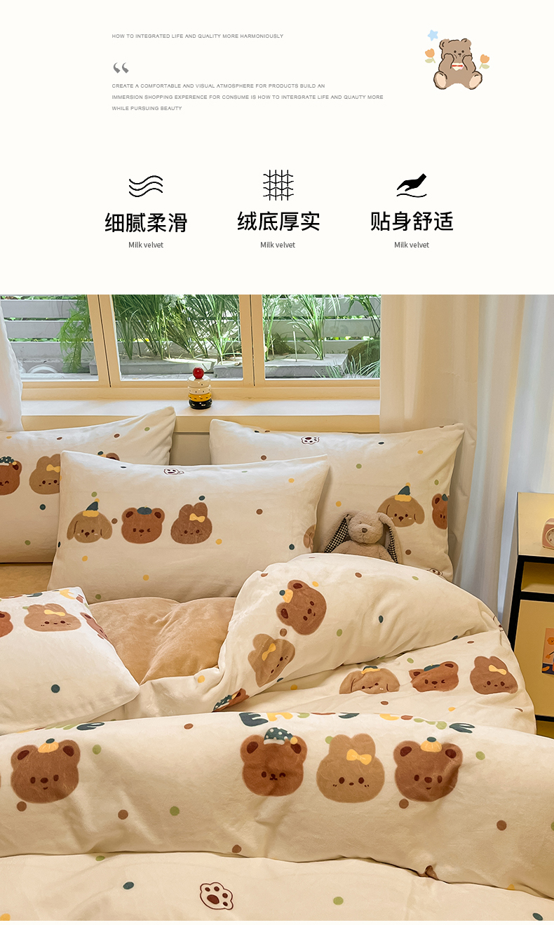 当前位置: 91家纺网 > 商品网购 > 床品套件 > 四件套 > 牛奶绒四件套 > 铭宣 2025新款高克重牛奶绒印花保暖四件套床单床笠单被套款 欢乐颂
