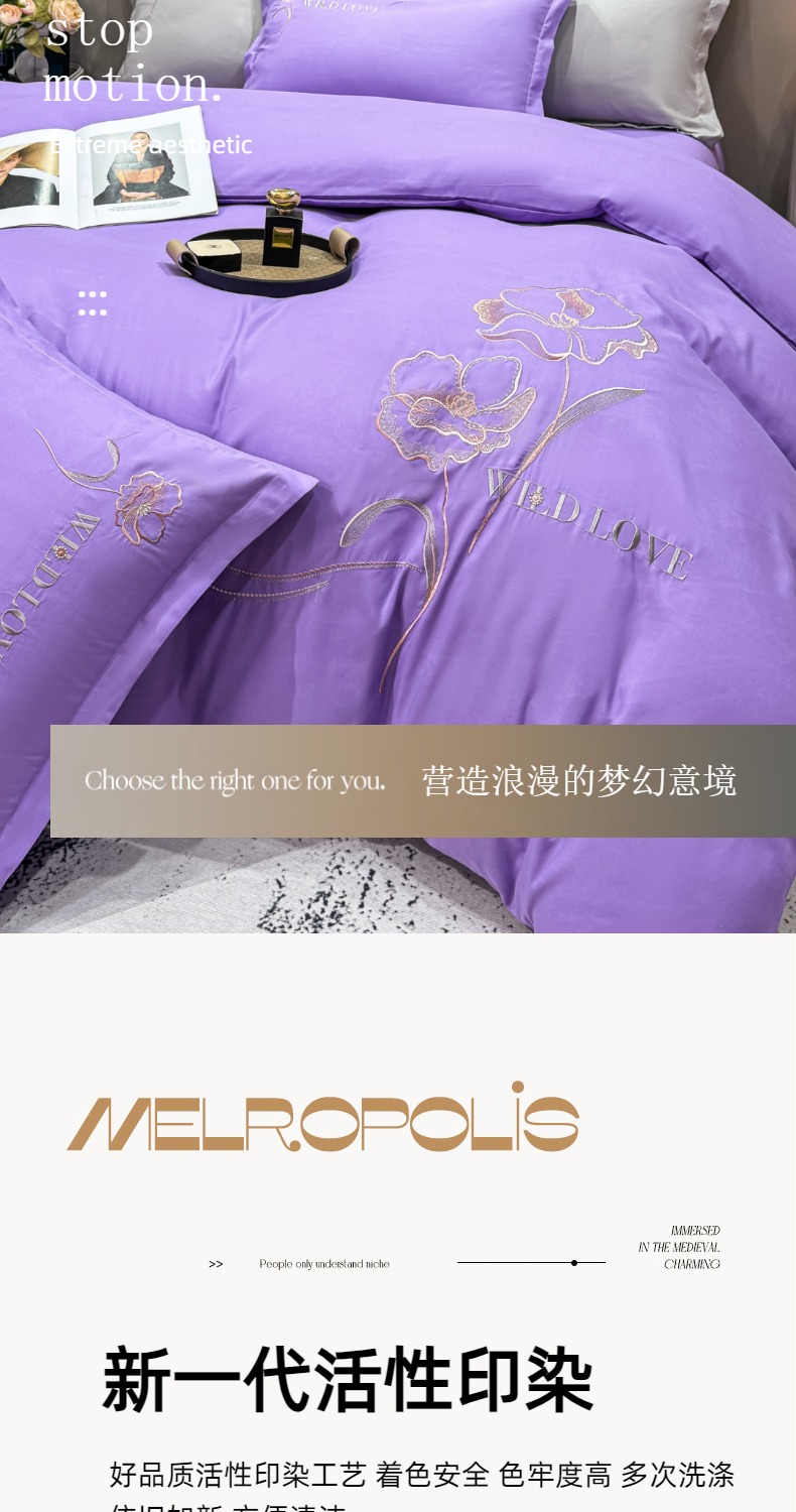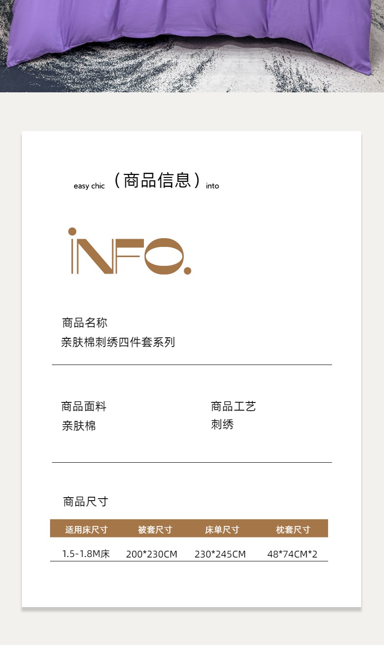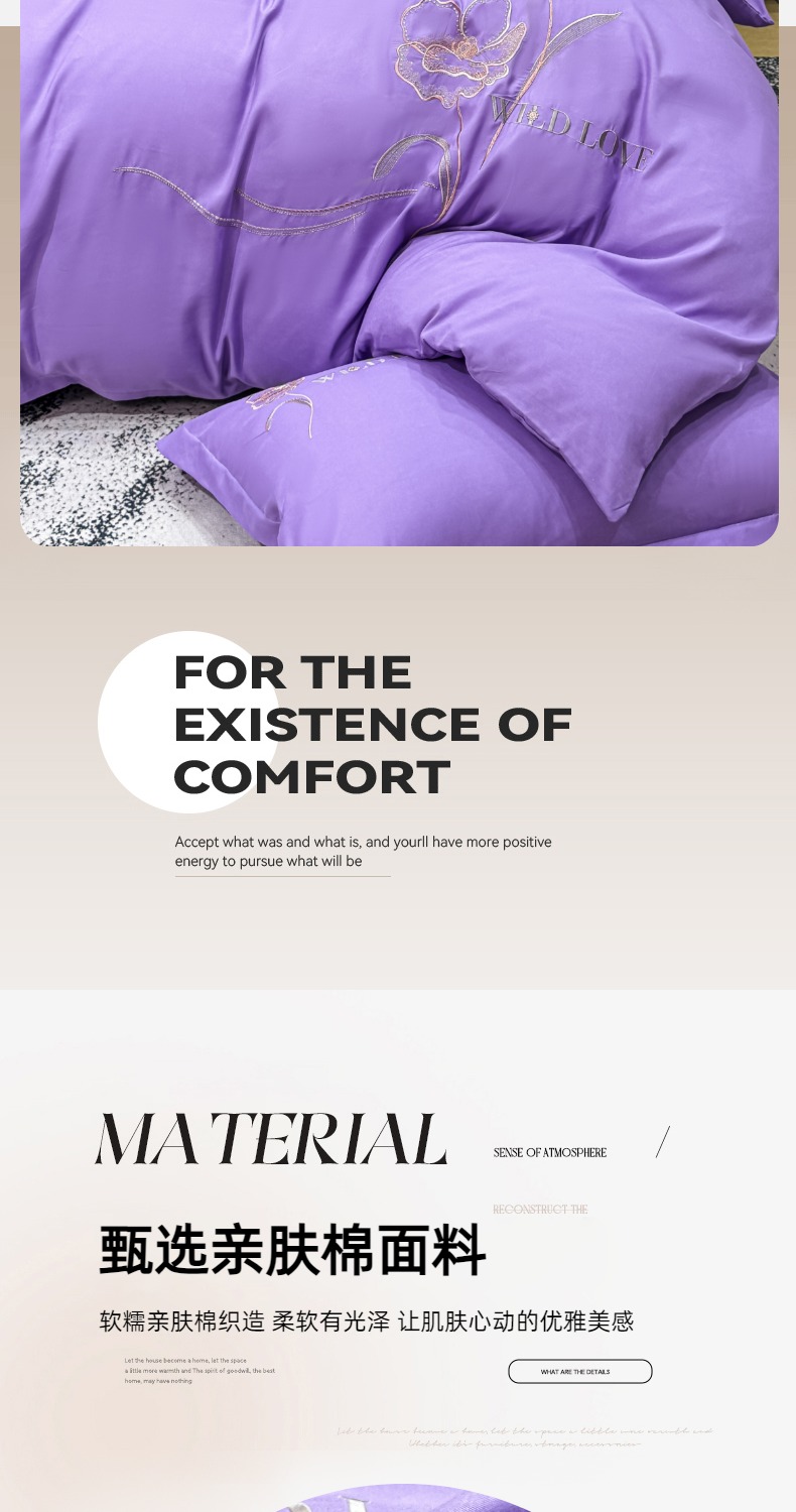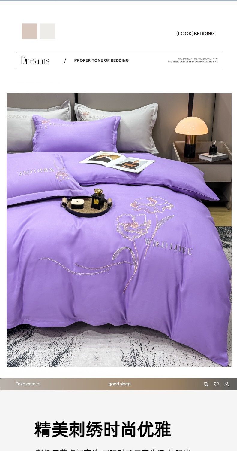 商品名称:悦织湾家纺 90克磨毛刺绣纯色四件套2025新款轻奢韩版公主风精致床上用品绣花亲肤水洗棉4件套 诗诺-紫色