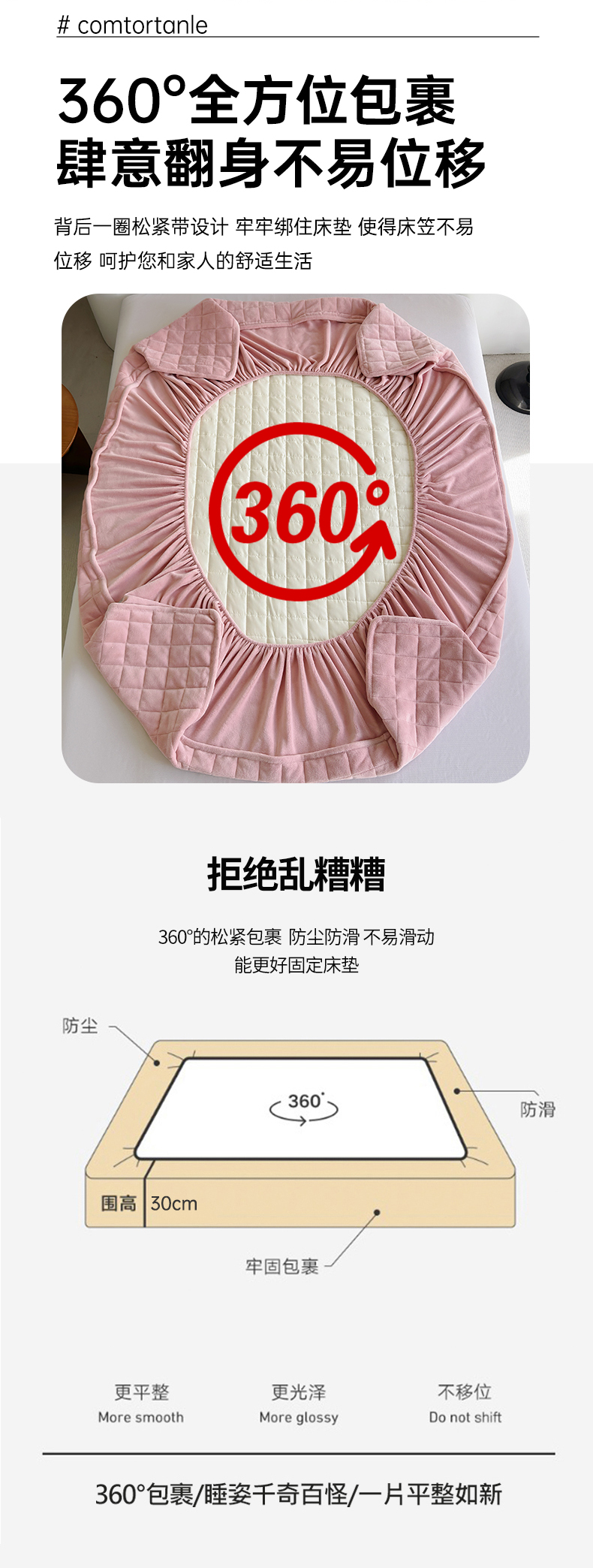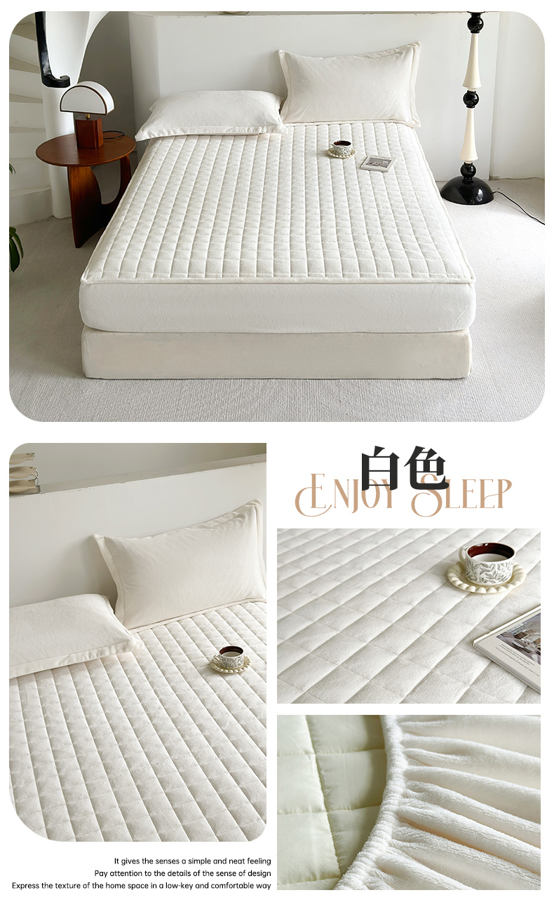 (总)寝柔家纺 2025新款冬季纯色消光加厚牛奶绒夹棉床笠,白色,藏青,粉色,灰色,绿色,驼色