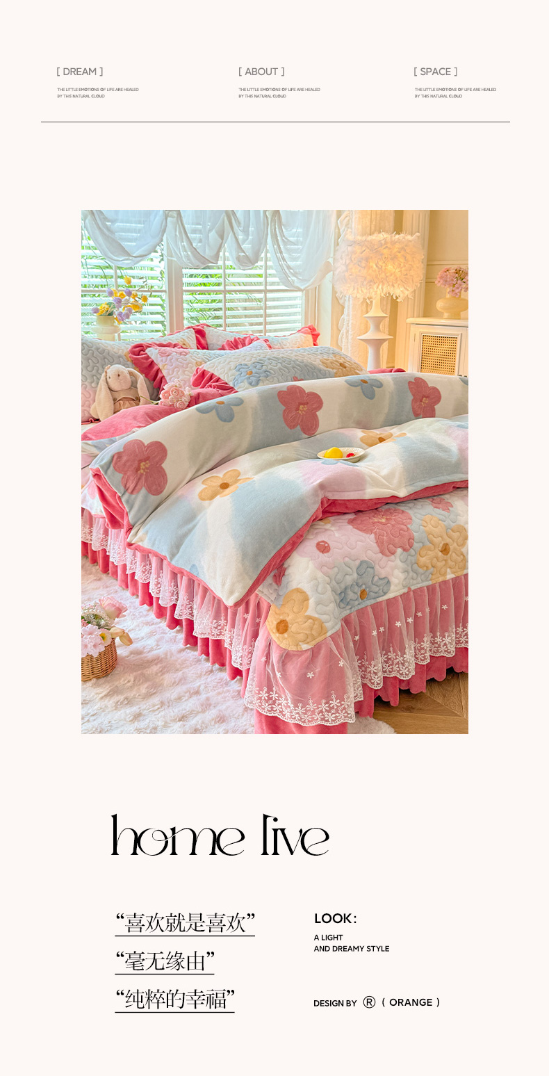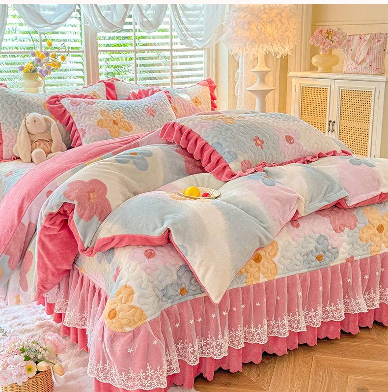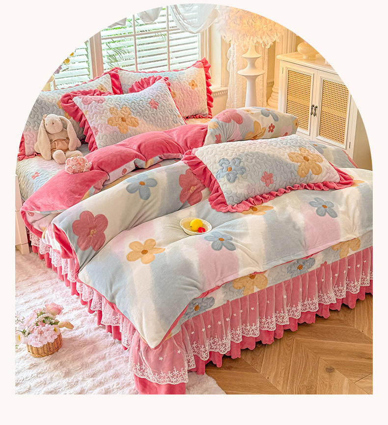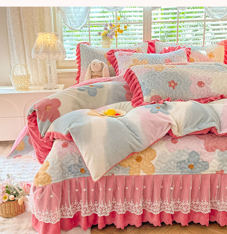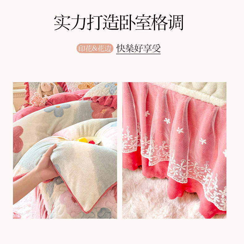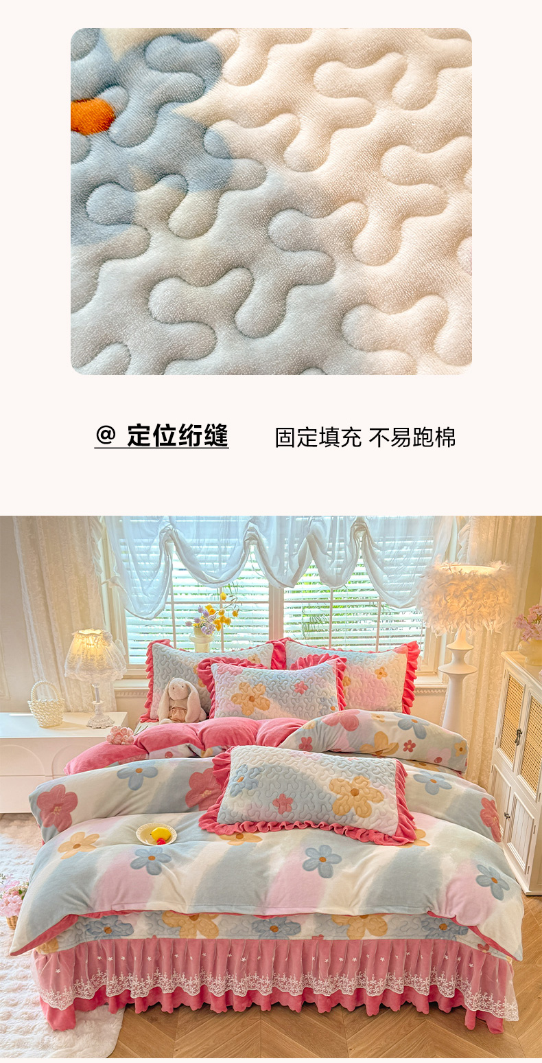 当前位置: 91家纺网 > 商品网购 > 床品套件 > 四件套 > 牛奶绒四件套 > 九诺家纺 2025新款直播热款双层蕾丝花边牛奶绒印花床盖四件套床盖单件三件套 风情-花海