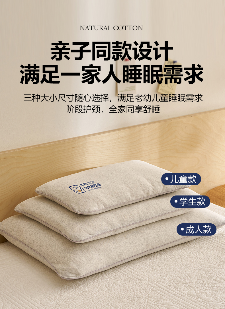 商品名称:乐可 2025新款全棉天竺棉棉花亲子枕 天竺棉棉花枕-米-儿童