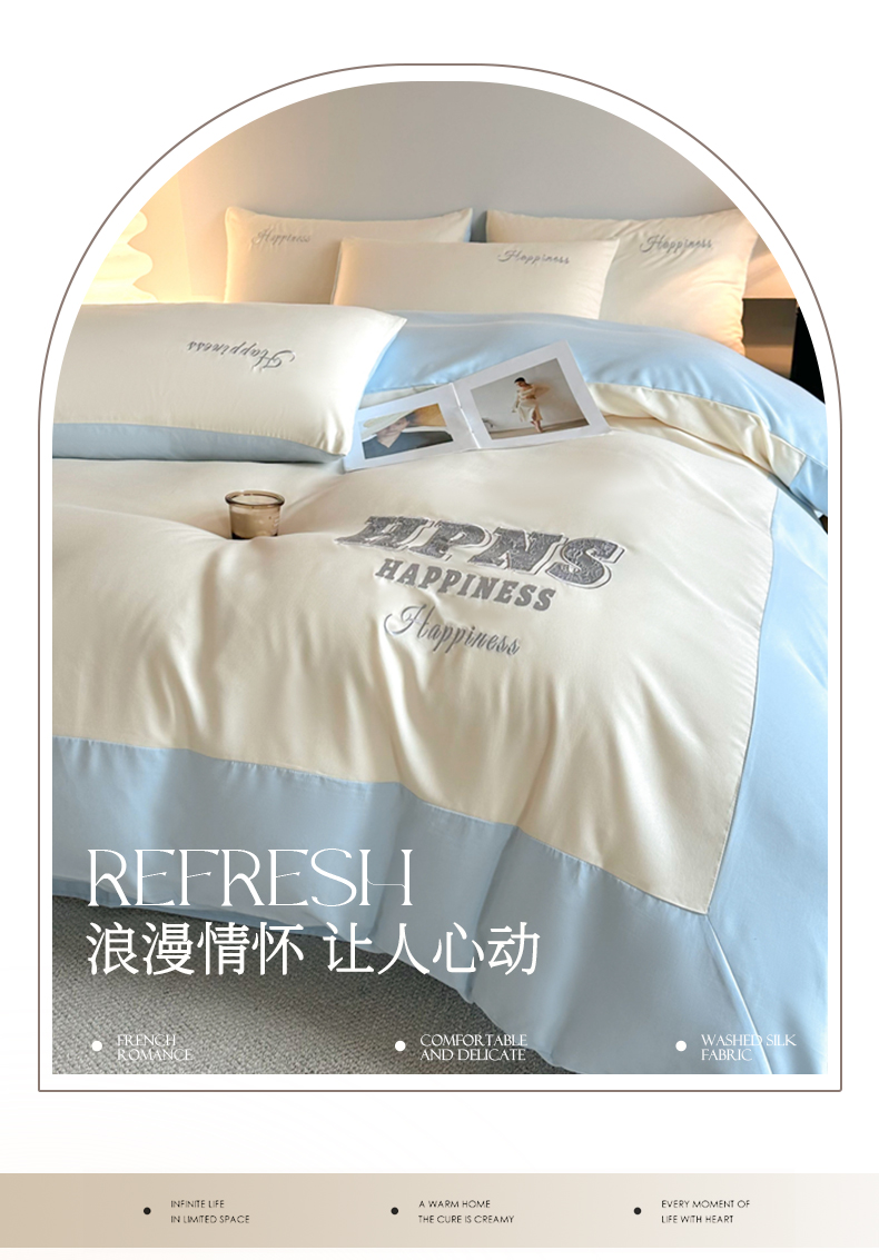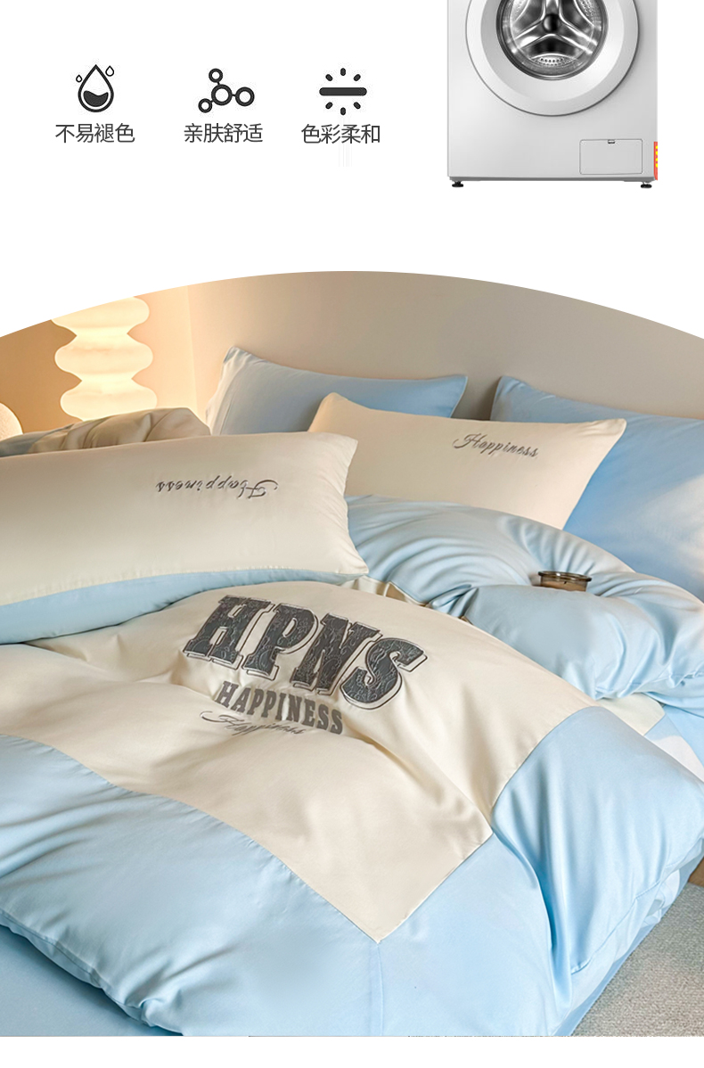 (总)麦空 2025新款水洗棉刺绣纯色四件套-晴空系列,宾利蓝,初黄,梵星蓝,海青,玫瑰粉,奶茶,奶昔白,奶油粉,山灰,天空蓝,星空蓝,中灰