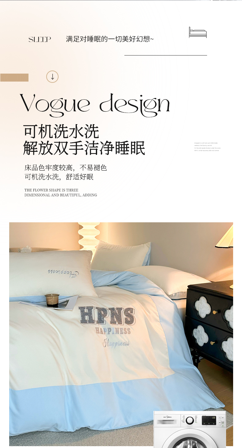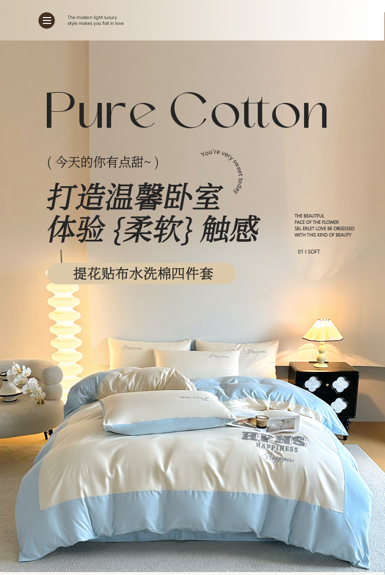 (总)麦空家居 2026新款提花大拼角贴布水洗棉四件套,宾利蓝,高级灰,海青,奶昔白,奶油粉,山灰,梵星兰