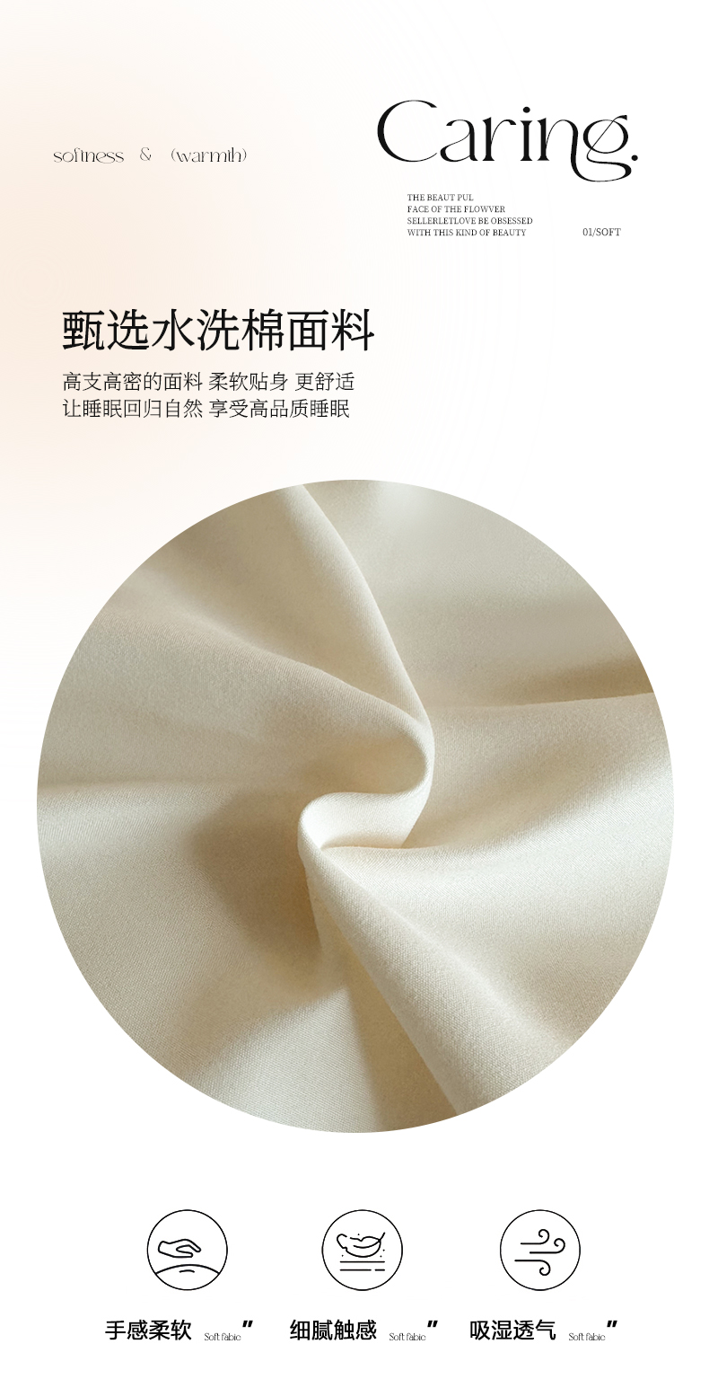 麦空家居 2026新款提花大拼角贴布水洗棉四件套 奶昔白