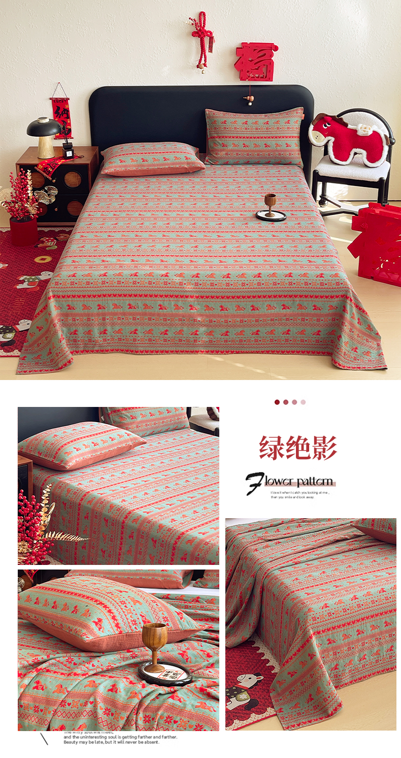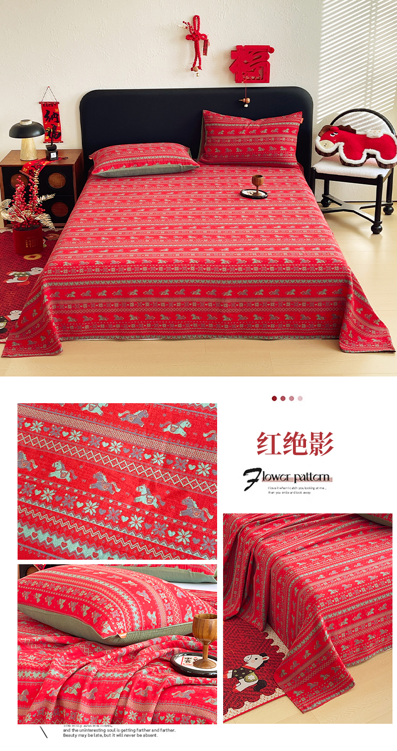 春皖家纺 2026新款全棉色织双层纱提花百福系列拉链款-单床单 红绝影