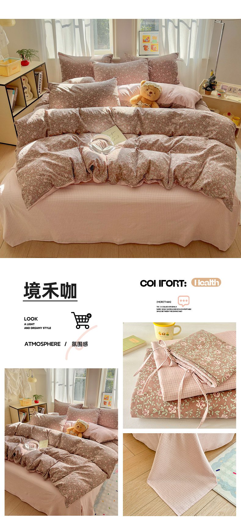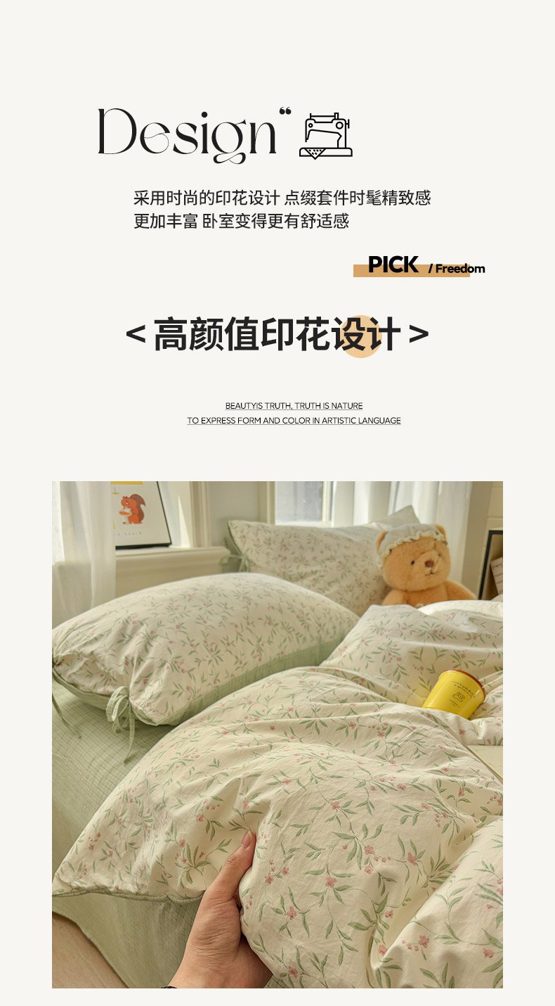 当前位置: 91家纺网 > 商品网购 > 床品套件 > 四件套 > 化纤普通四件套 > 金梦拉家纺 2026新款小清新绑带格纹碎花系列四件套-花园里系列 花园里-春日序曲