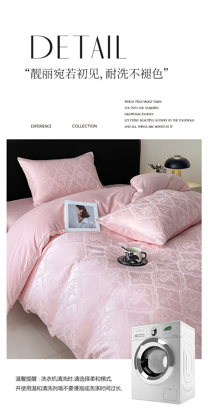 商品名称:大麦乐田 2026春夏新款贡缎提花纯色双拼四件套 爱心 香粉玉
