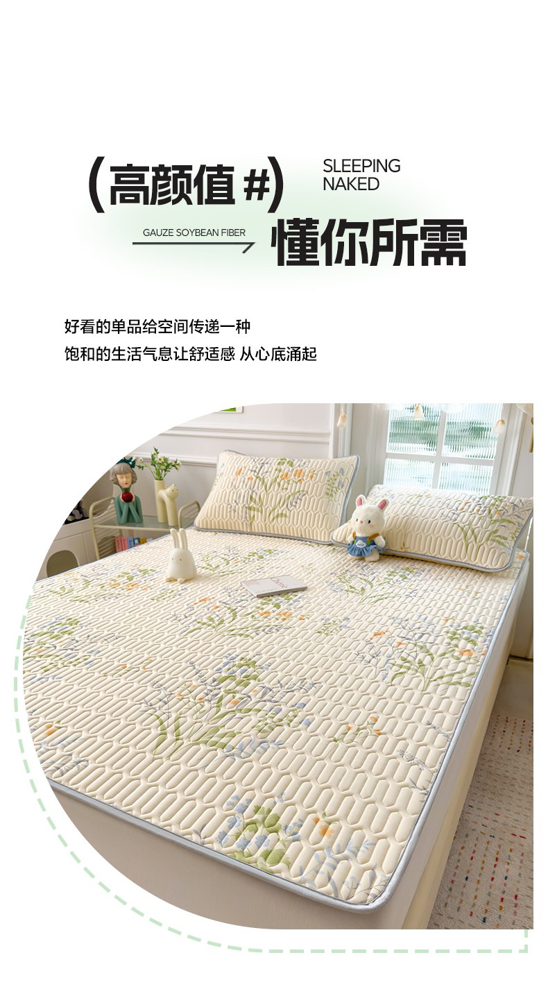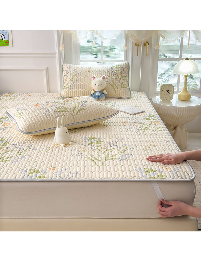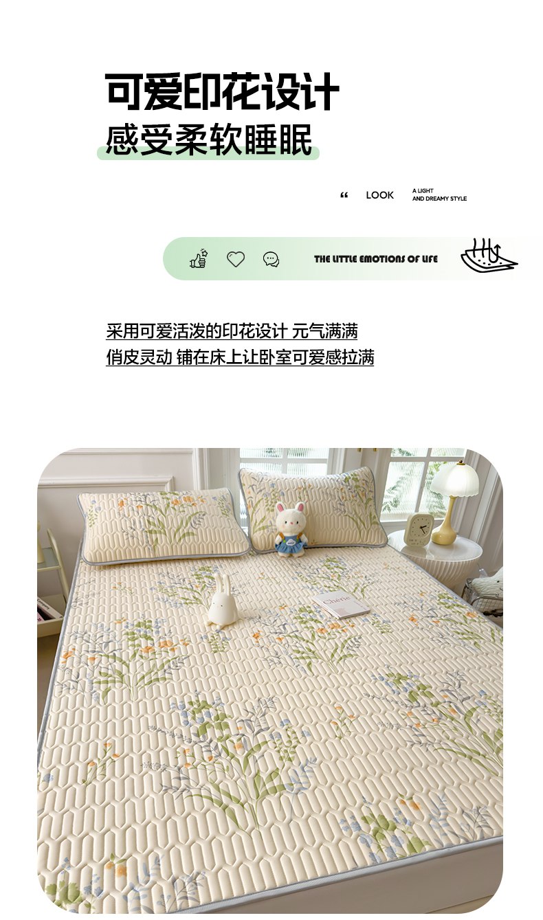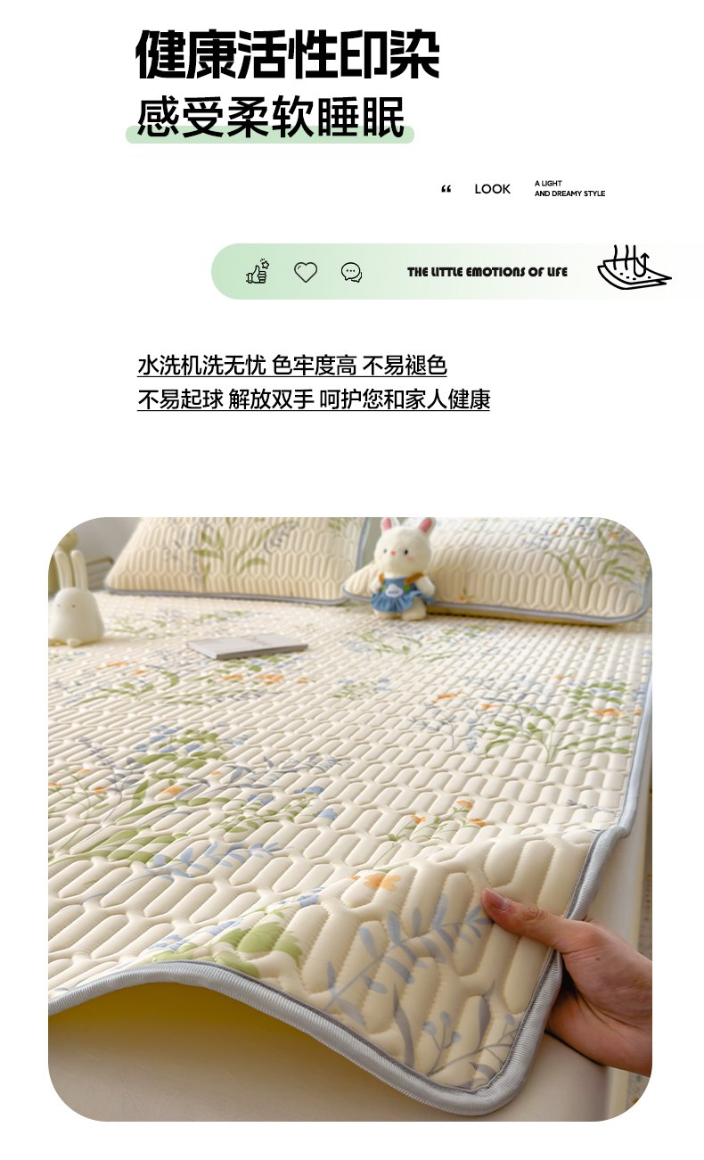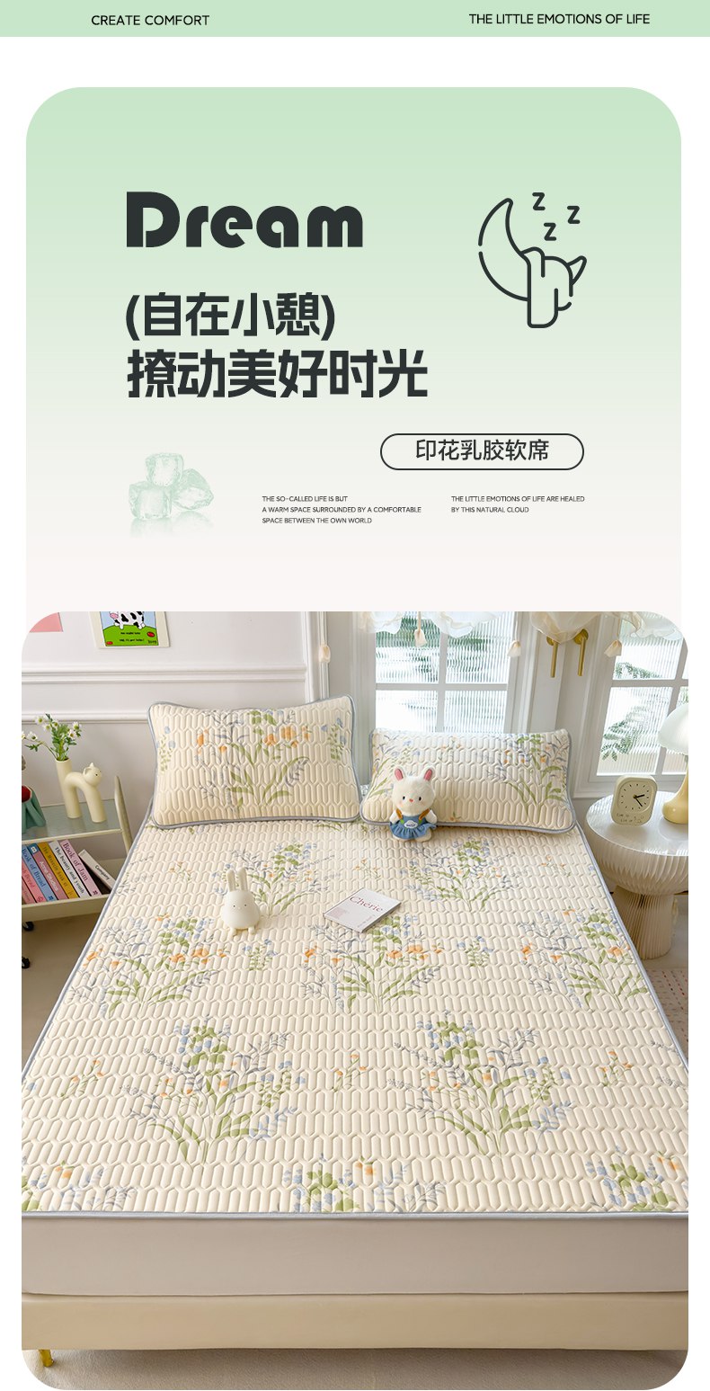 摩妮卡 2026新款数码大版小清新乳胶凉席床席款三件套-场景二 清新花语