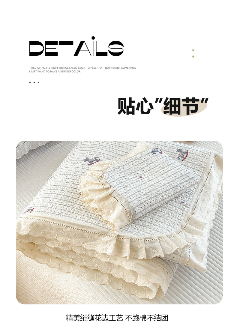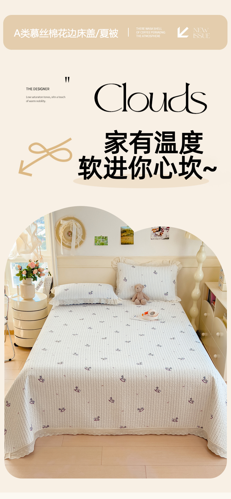 (总)叠派家纺 2026新款A类印花慕丝绵花边款床盖系列(抽空压缩可供跨境)提供买家秀,莫兰迪+浅紫,洛可可+粉,蓝庭叙+灰,锦芙+驼,金兰+黄,凡尔赛+粉,蓝漪+蓝,洛雅+黛紫,墨芳+灰,清漫+绿,波点序章+驼,青妍+粉,星心兔语+粉,熊兔叙+蓝,云菇森林+浅紫,木马童谣+灰,蛋糕熊+绿,甜梦熊+浅粉