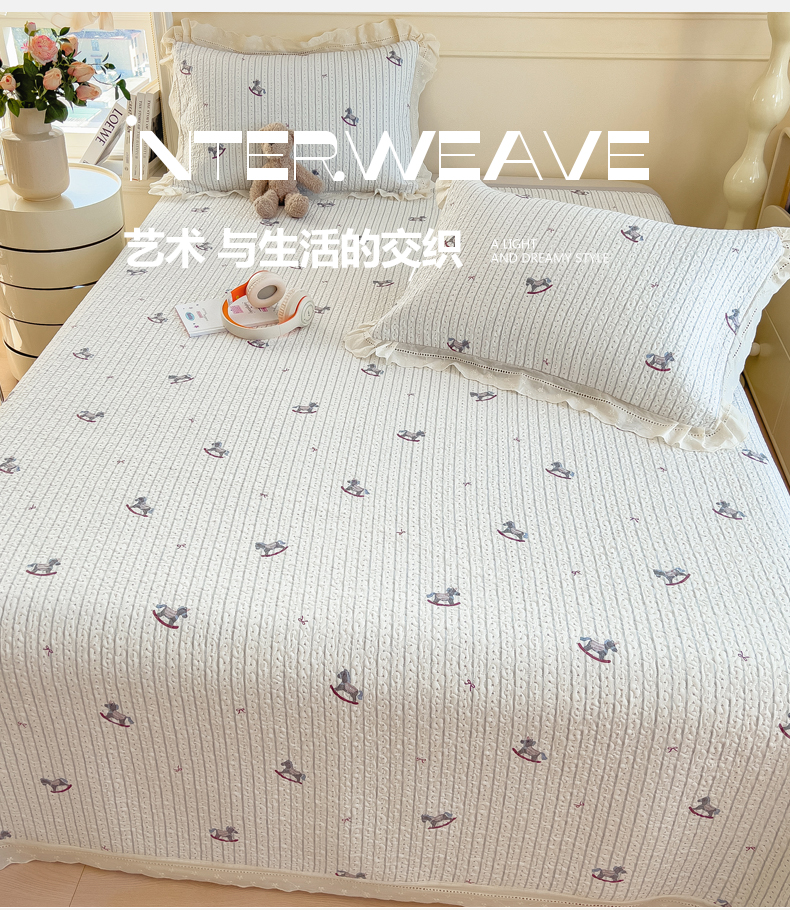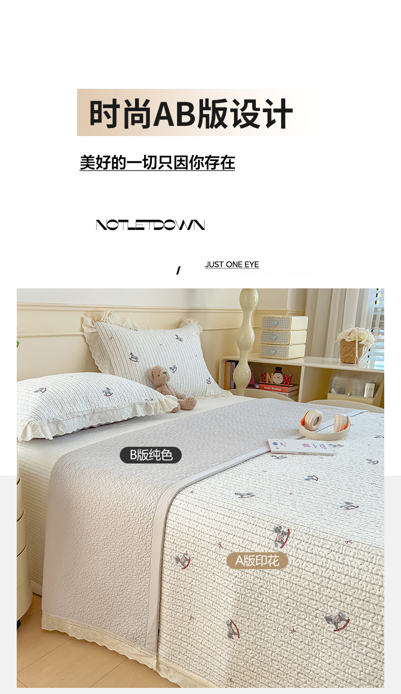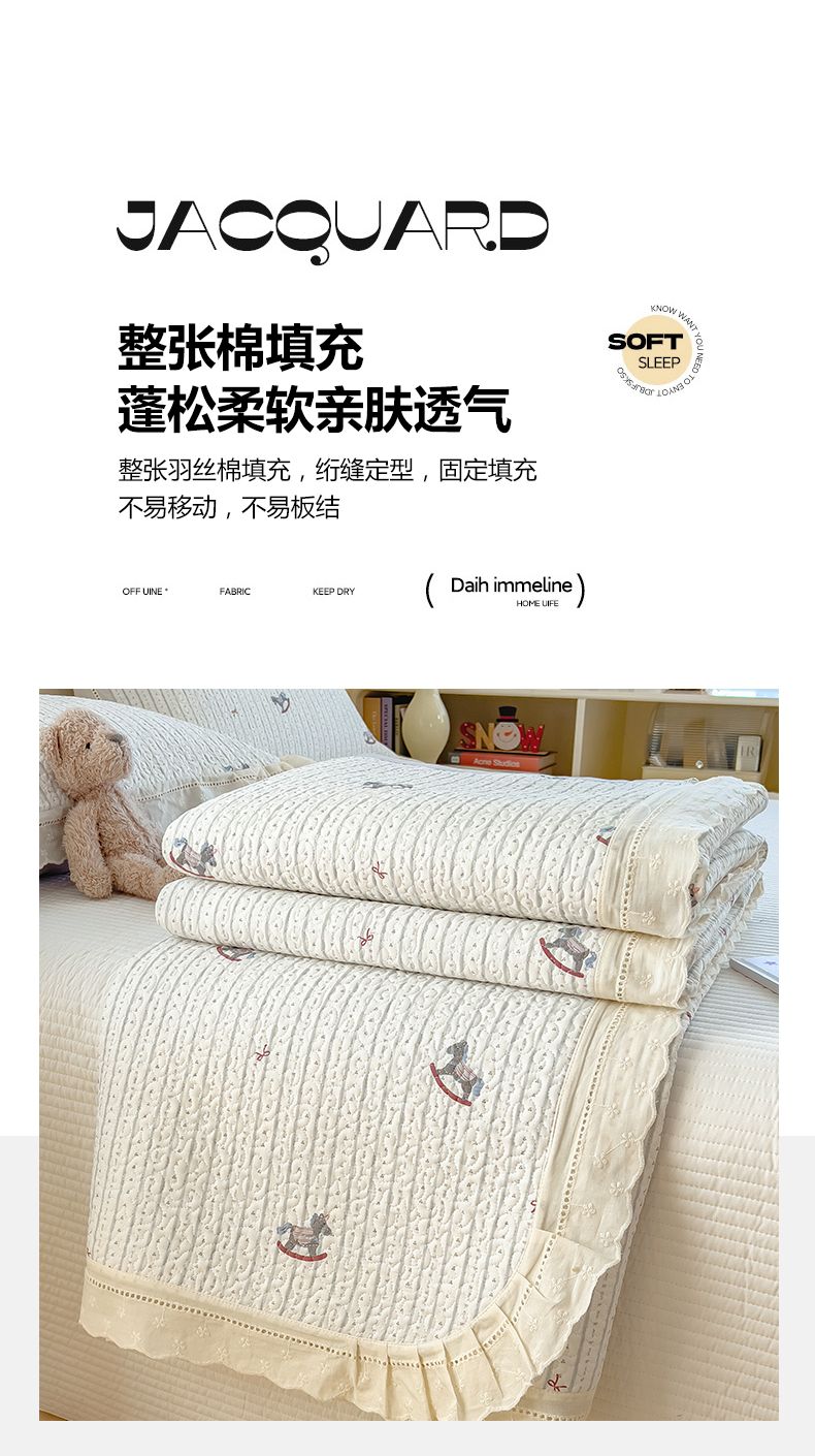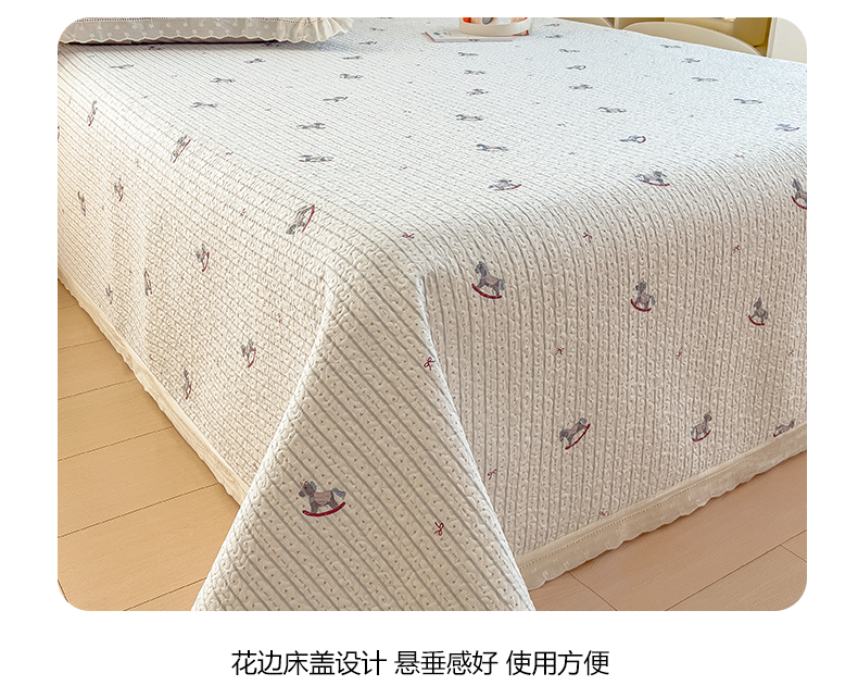 • 91家纺网 家纺一手货源 找家纺 叠派家纺 2026新款A类印花慕丝绵花边款床盖系列(抽空压缩可供跨境)提供买家秀 木马童谣+灰