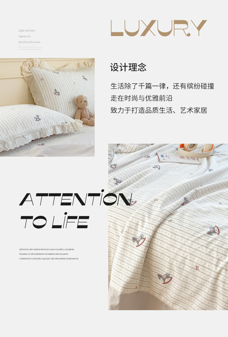 当前位置: 91家纺网 > 商品网购 > 床上用品 > 床盖 > 叠派家纺 2026新款A类印花慕丝绵花边款床盖系列(抽空压缩可供跨境)提供买家秀 木马童谣+灰