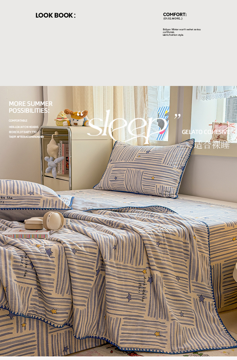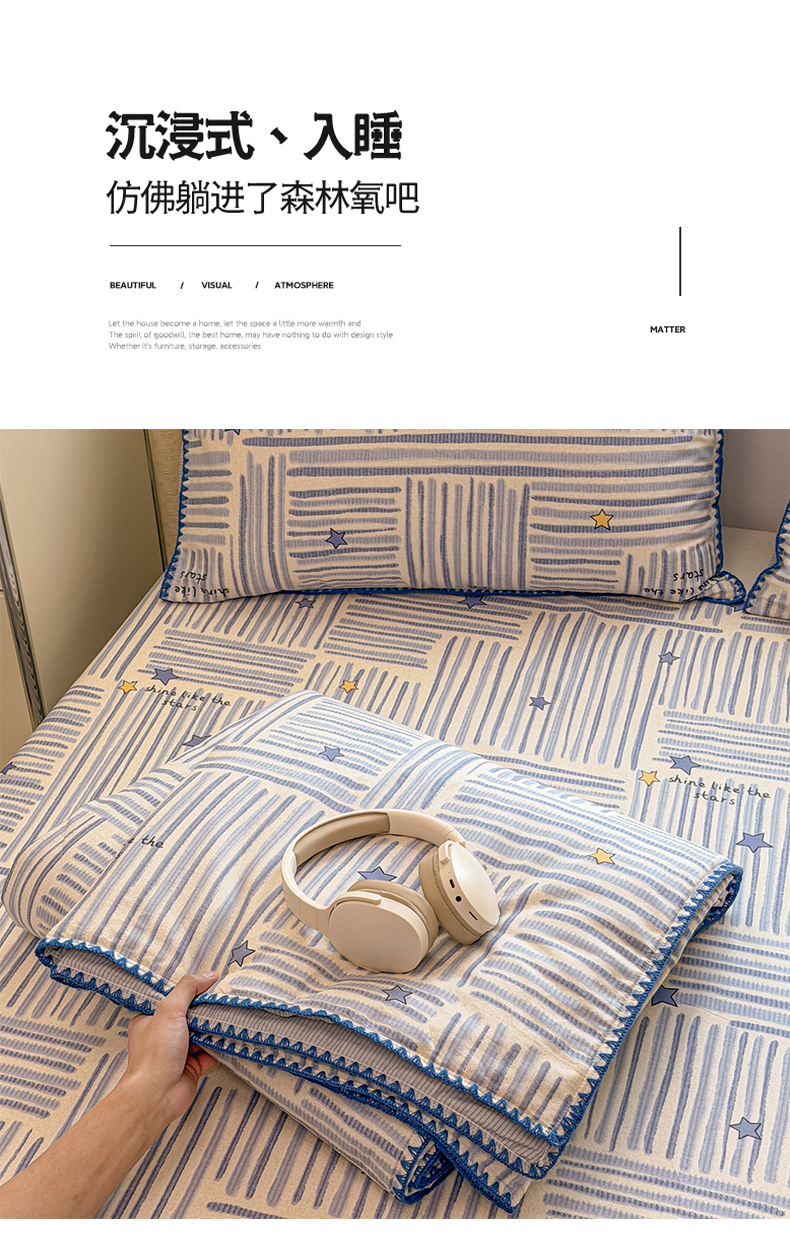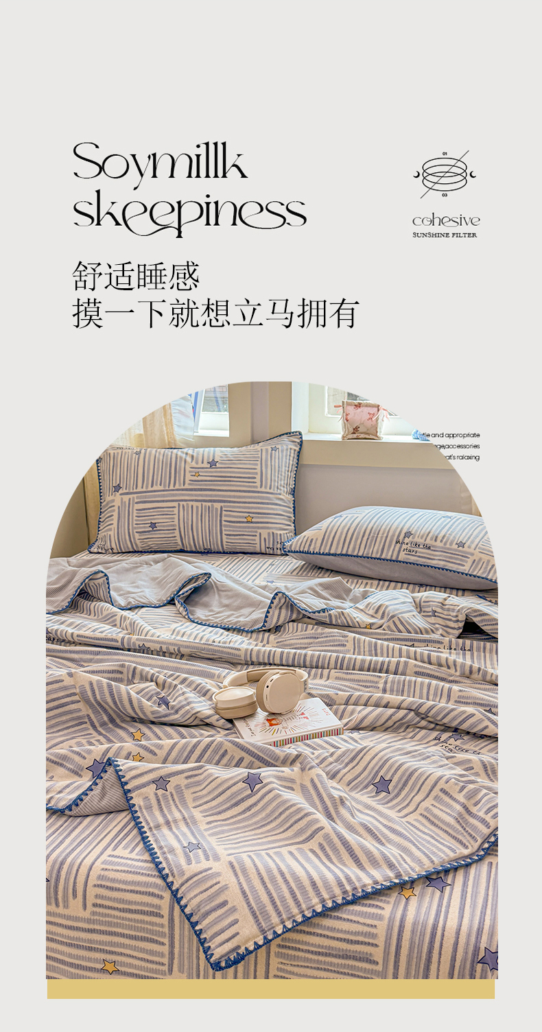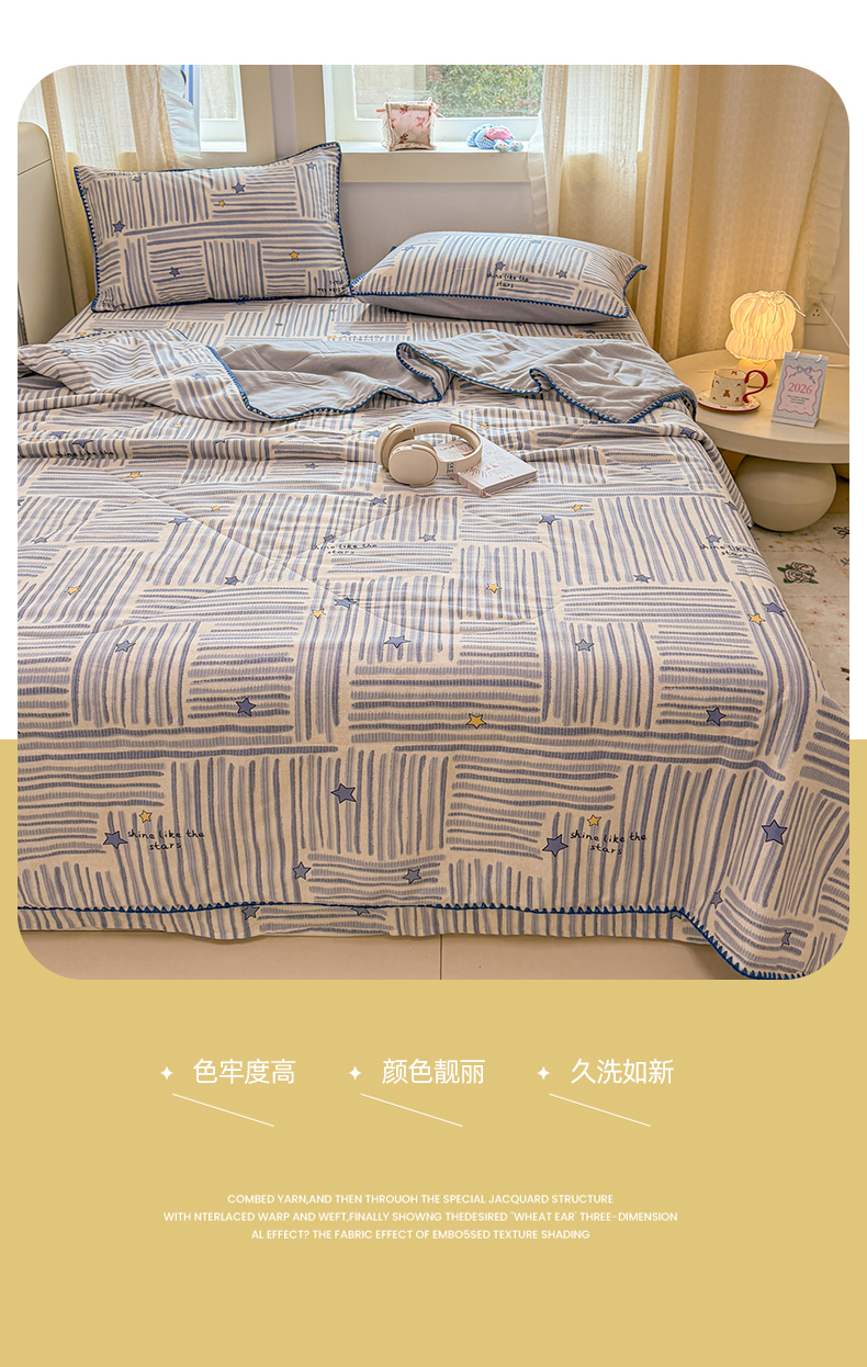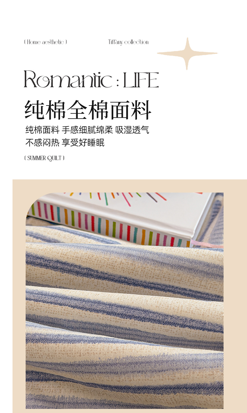 当前位置: 91家纺网 > 商品网购 > 床品套件 > 四件套 > 全棉普通四件套 > 简宜家居(朝初家纺) 2026新款全棉花卉卡通系列贝壳边夏被四件套 星落灰条