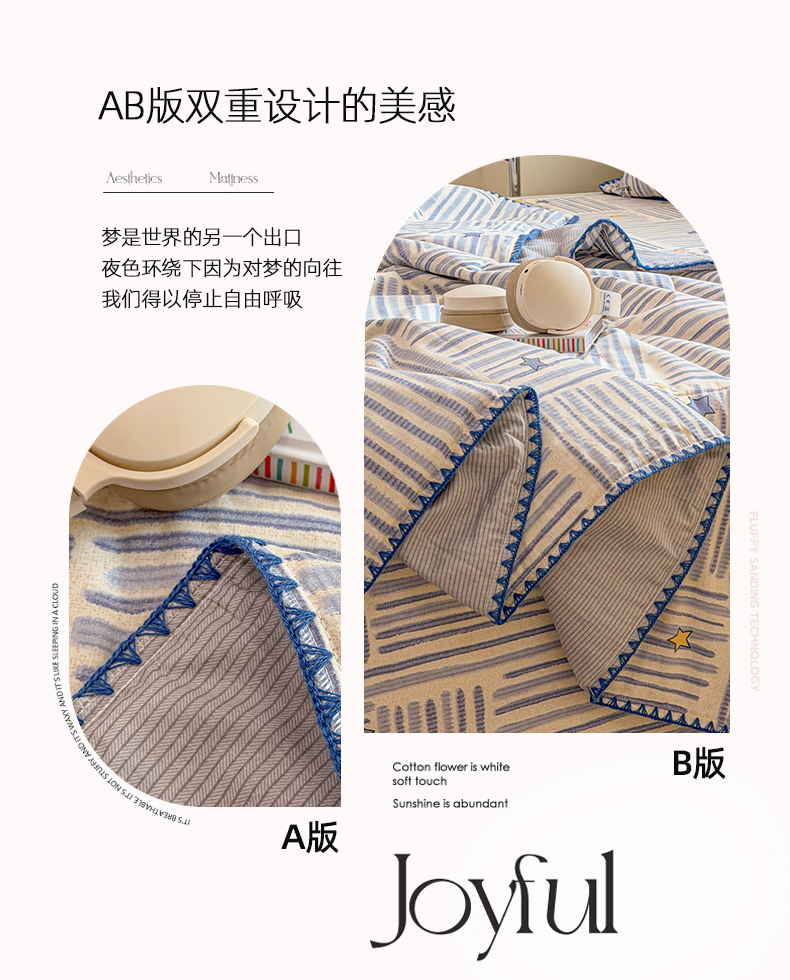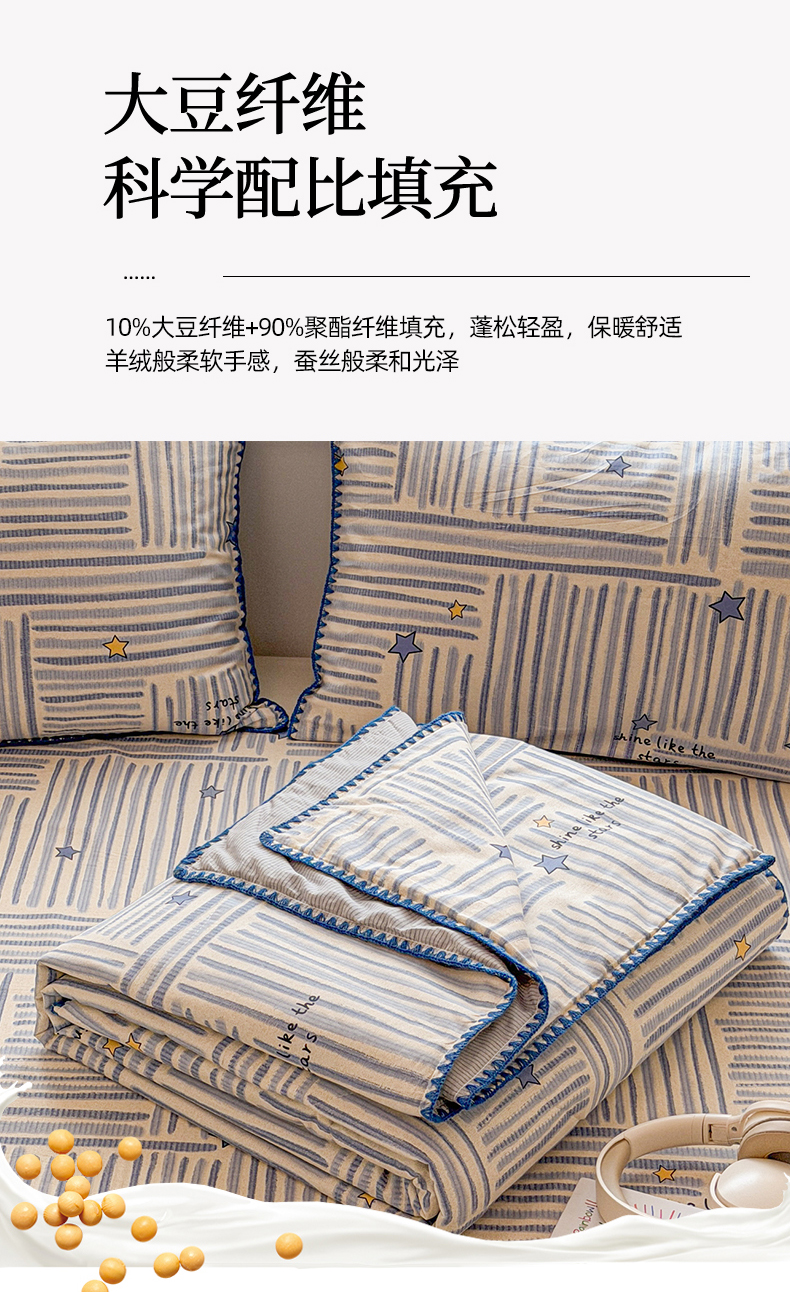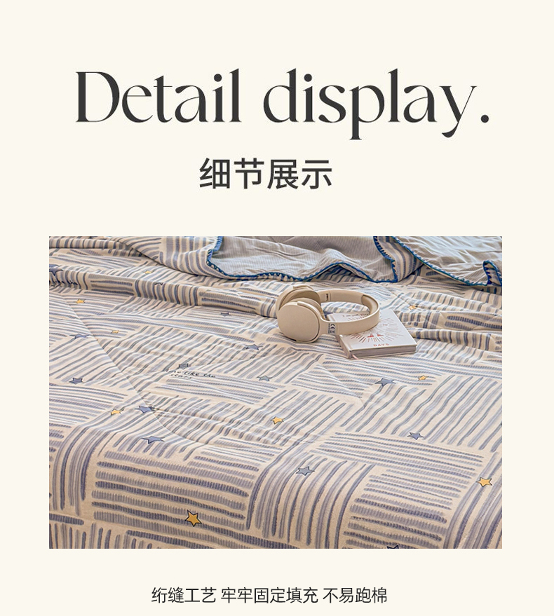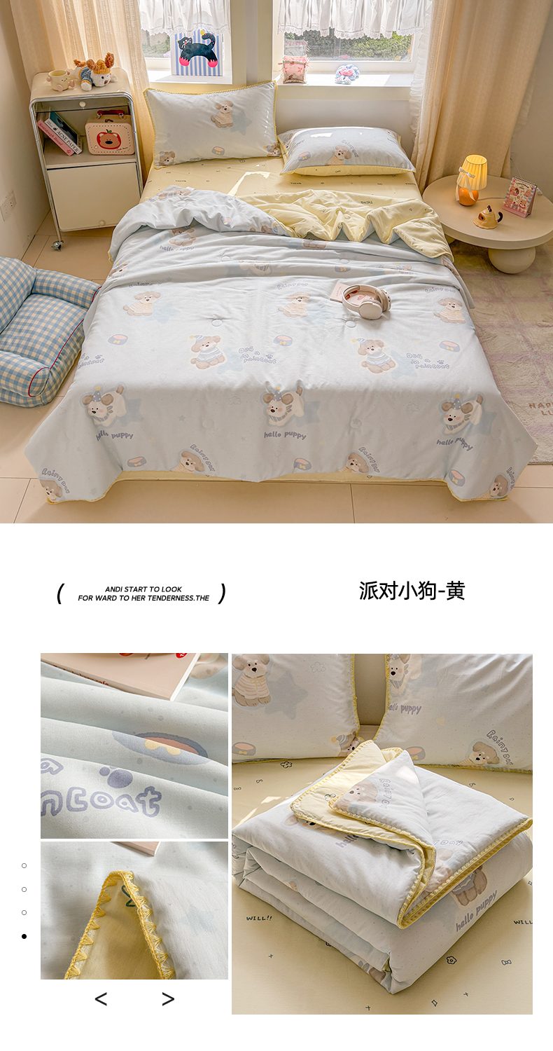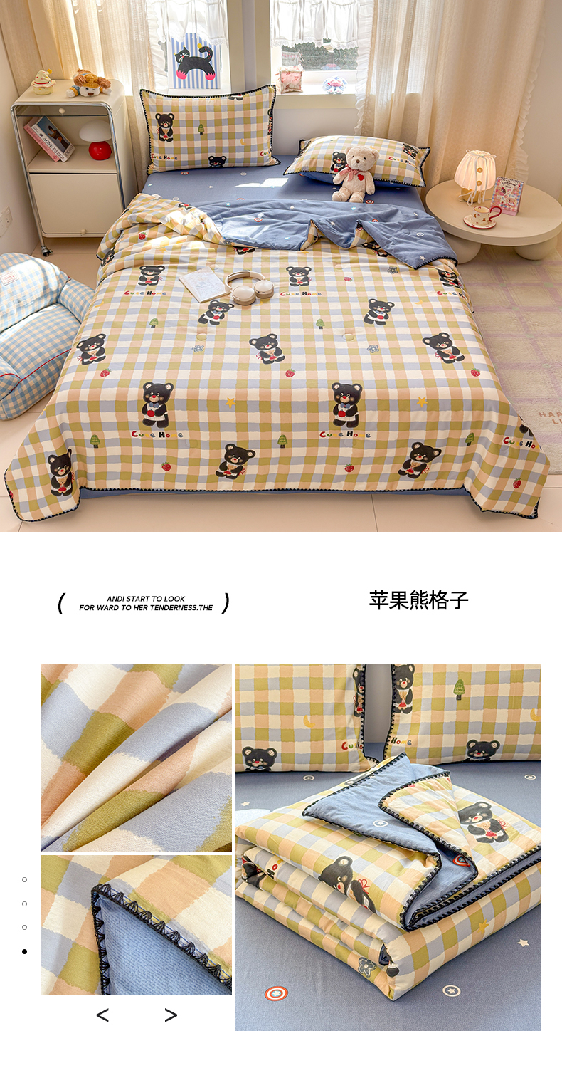 当前位置: 91家纺网 > 商品网购 > 床品套件 > 四件套 > 全棉普通四件套 > 简宜家居(朝初家纺) 2026新款全棉花卉卡通系列贝壳边夏被四件套 星落灰条
