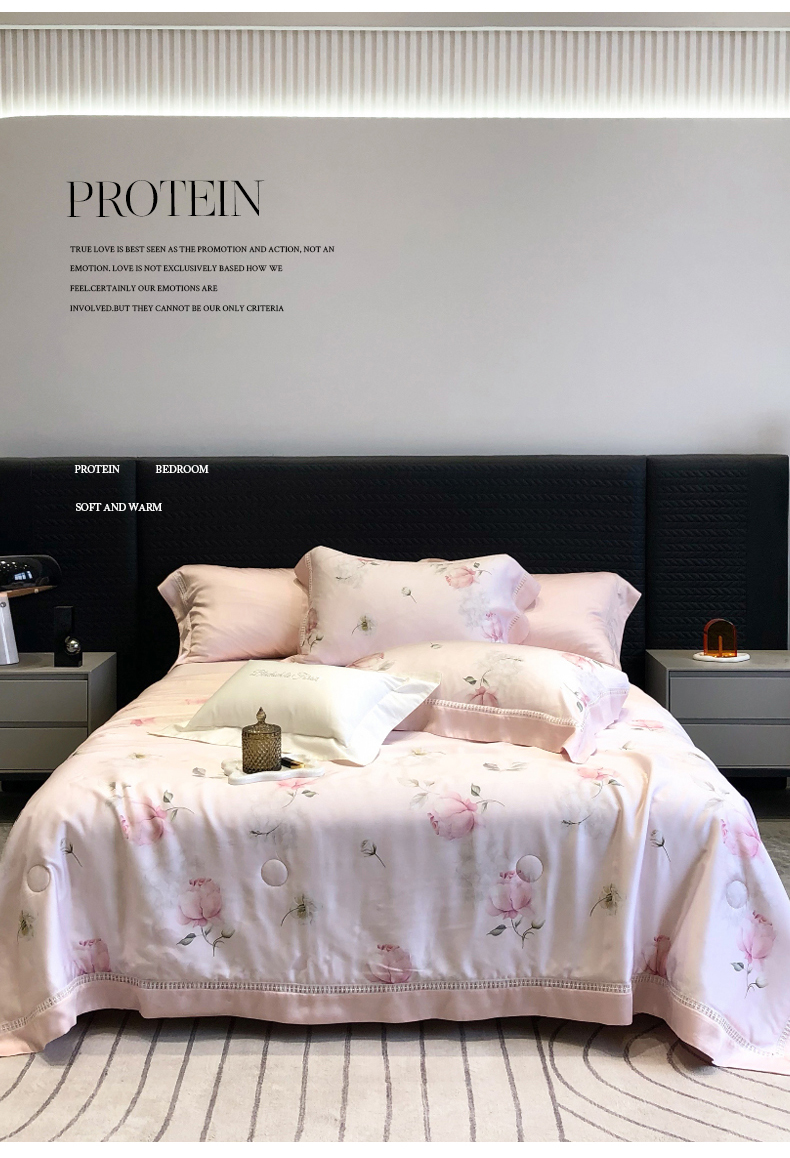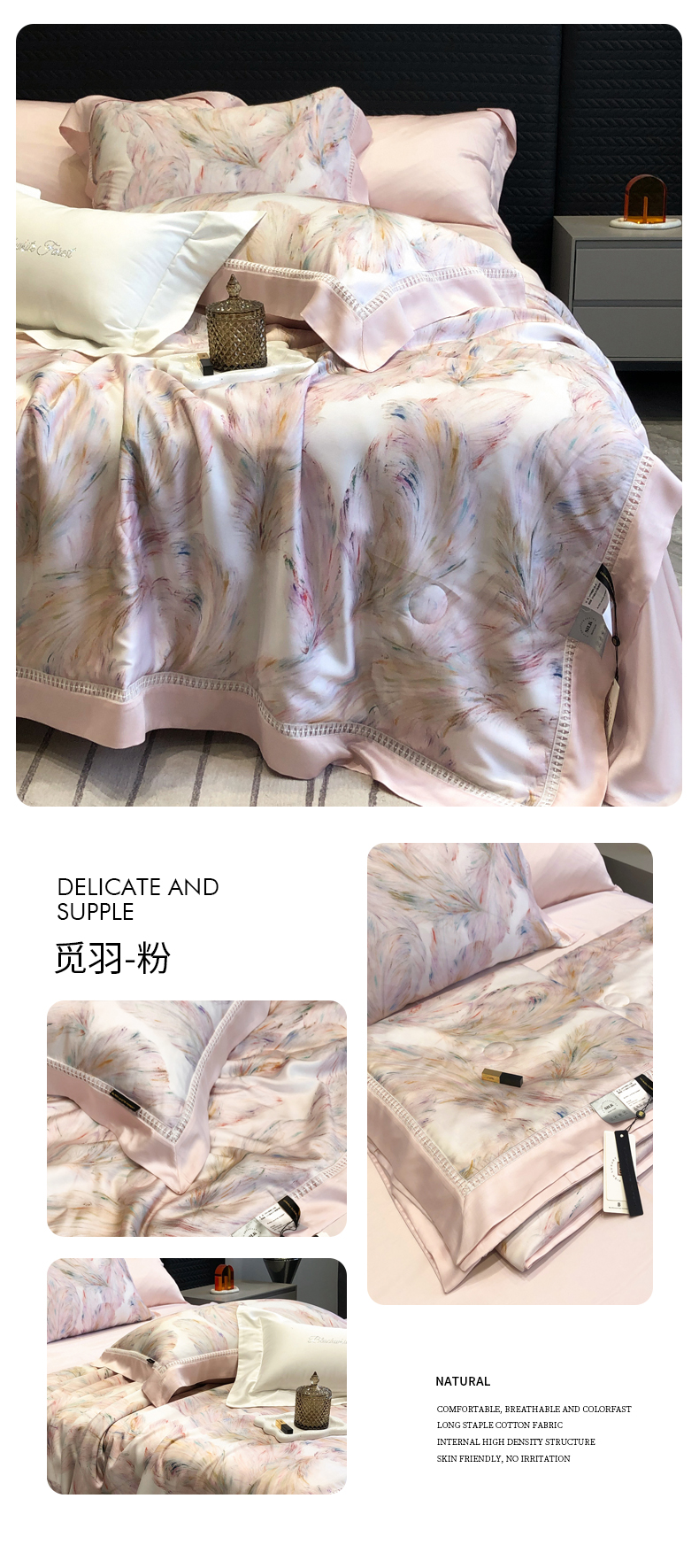 (总)黑白森林 2026新款天丝印花夏被四件套系列,觅羽-粉,觅羽-绿,慕颜,情愫-灰,如愿,薇宁
