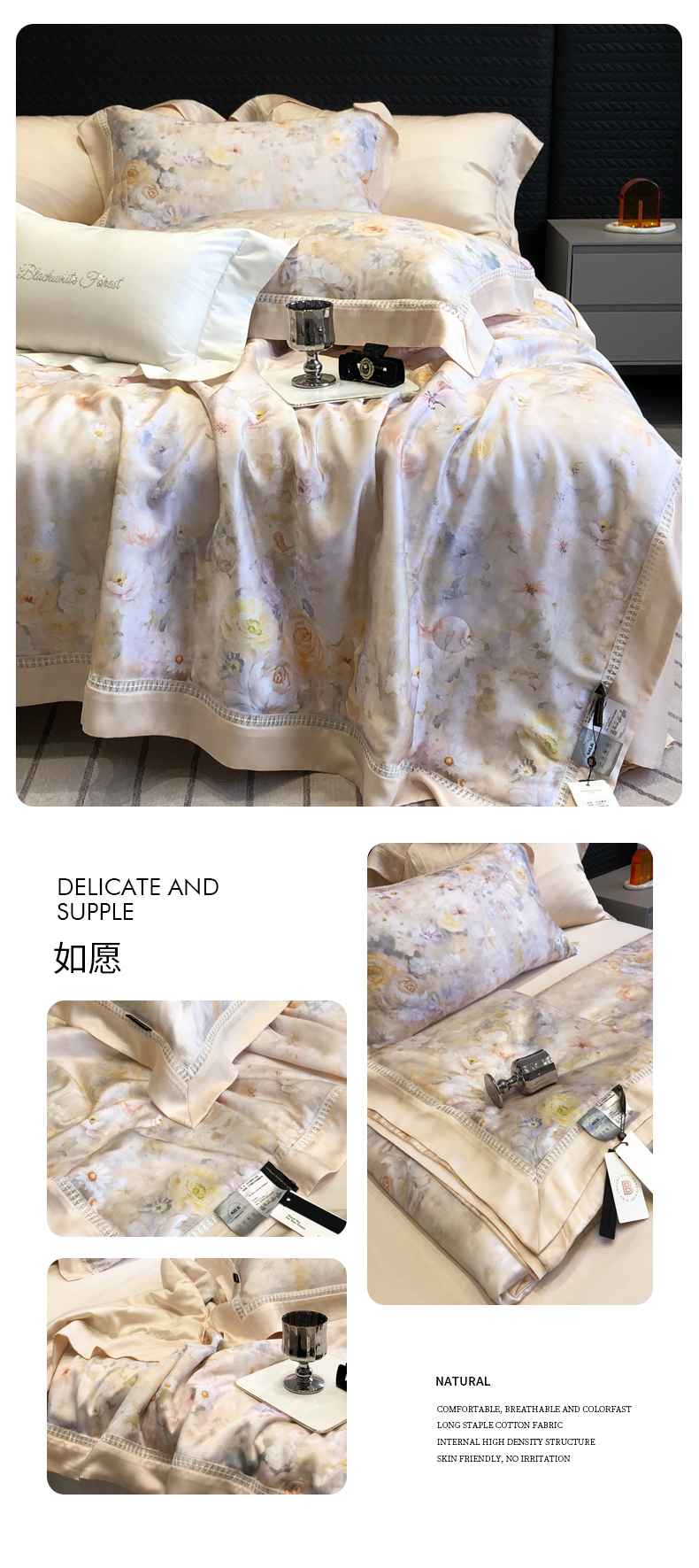 黑白森林2024款 60S支兰精天丝数码印花四件套,朝颜,木槿,玉茗,春浅,京墨,半夏,丹若,繁缕,青黛,德琳-粉,德琳-绿,蒂娜-灰,蒂娜-紫,慧莉-粉,慧莉-绿,欧瑞,夏夜