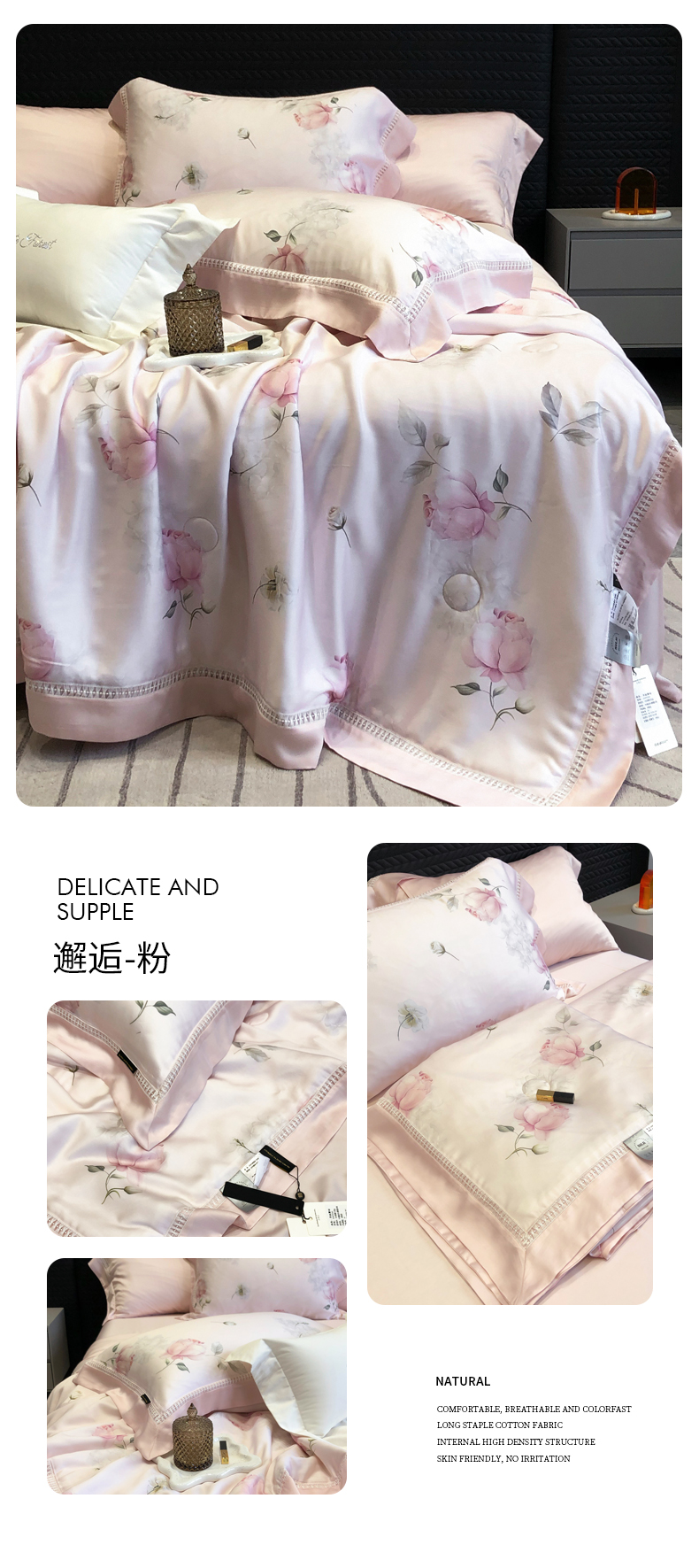 黑白森林2024款 50X50S高支天丝棉数码印花四件套天丝全棉,伊芙琳-粉,伊芙琳-蓝