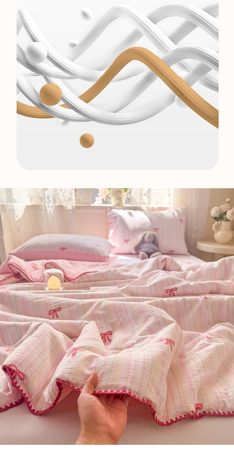 商品名称:雅蔓依家纺 2026春夏新款三角针贝壳边木棉云感双层纱棉花夏被夏凉被空调被 翩翩起舞