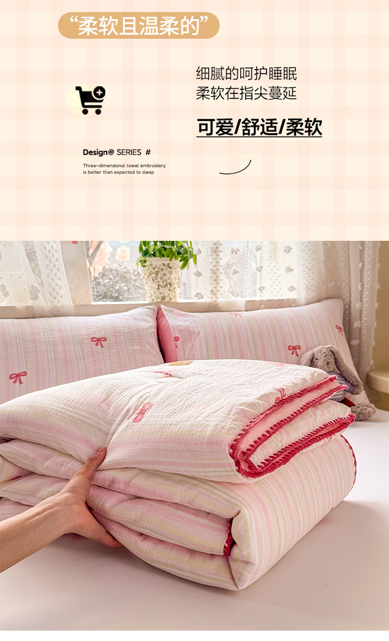 雅蔓依家纺 2026春夏新款三角针贝壳边木棉云感双层纱棉花夏被夏凉被空调被 翩翩起舞