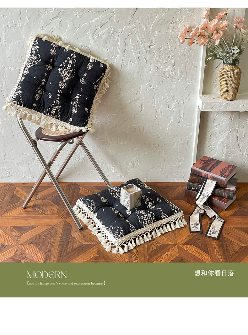 (总)座享家 2026新款棉麻提花小流苏坐垫,流苏繁华,流苏格棕,流苏灰叶,流苏绿叶,复古黑,复古红,复古咖,组合图