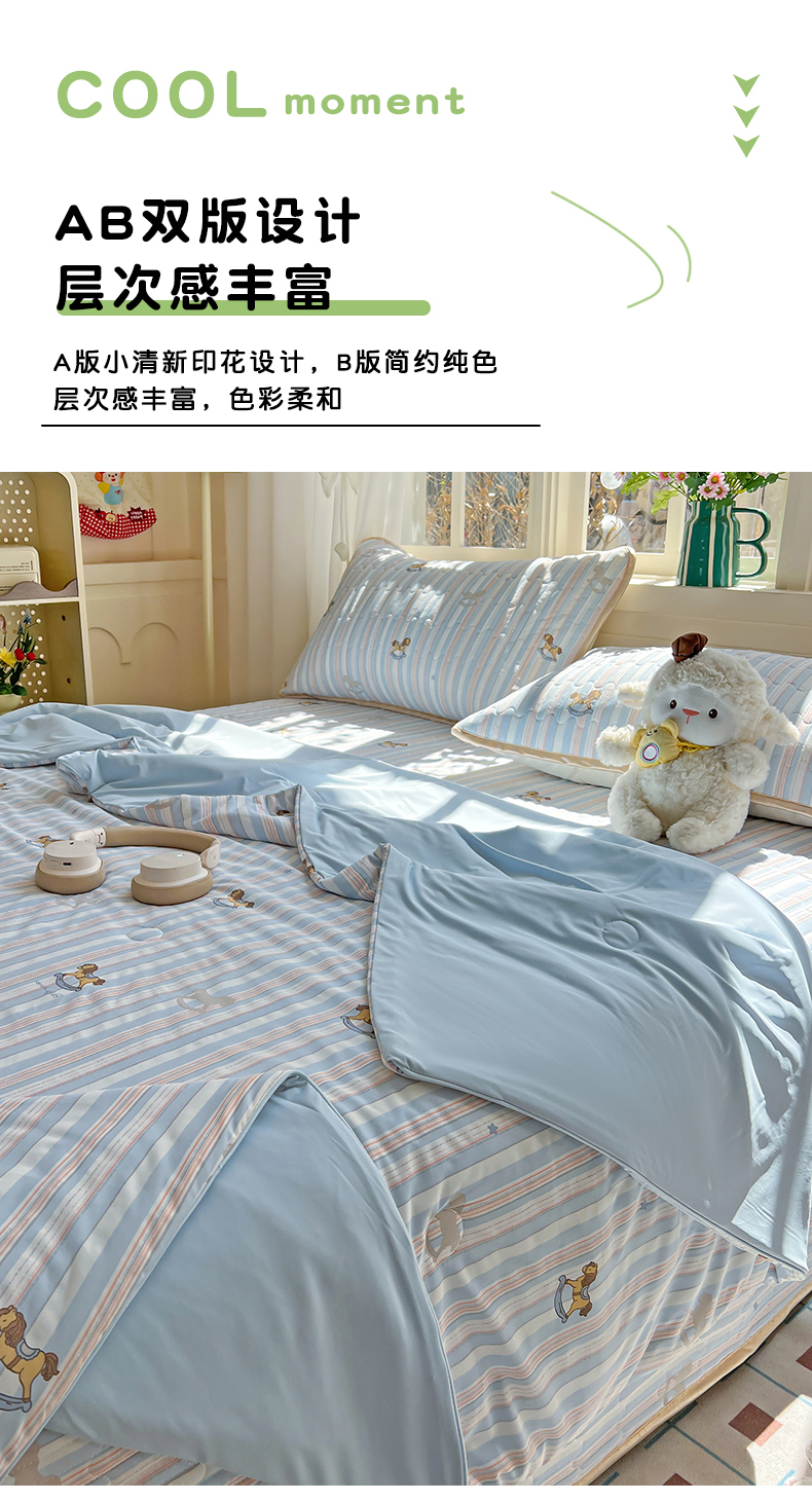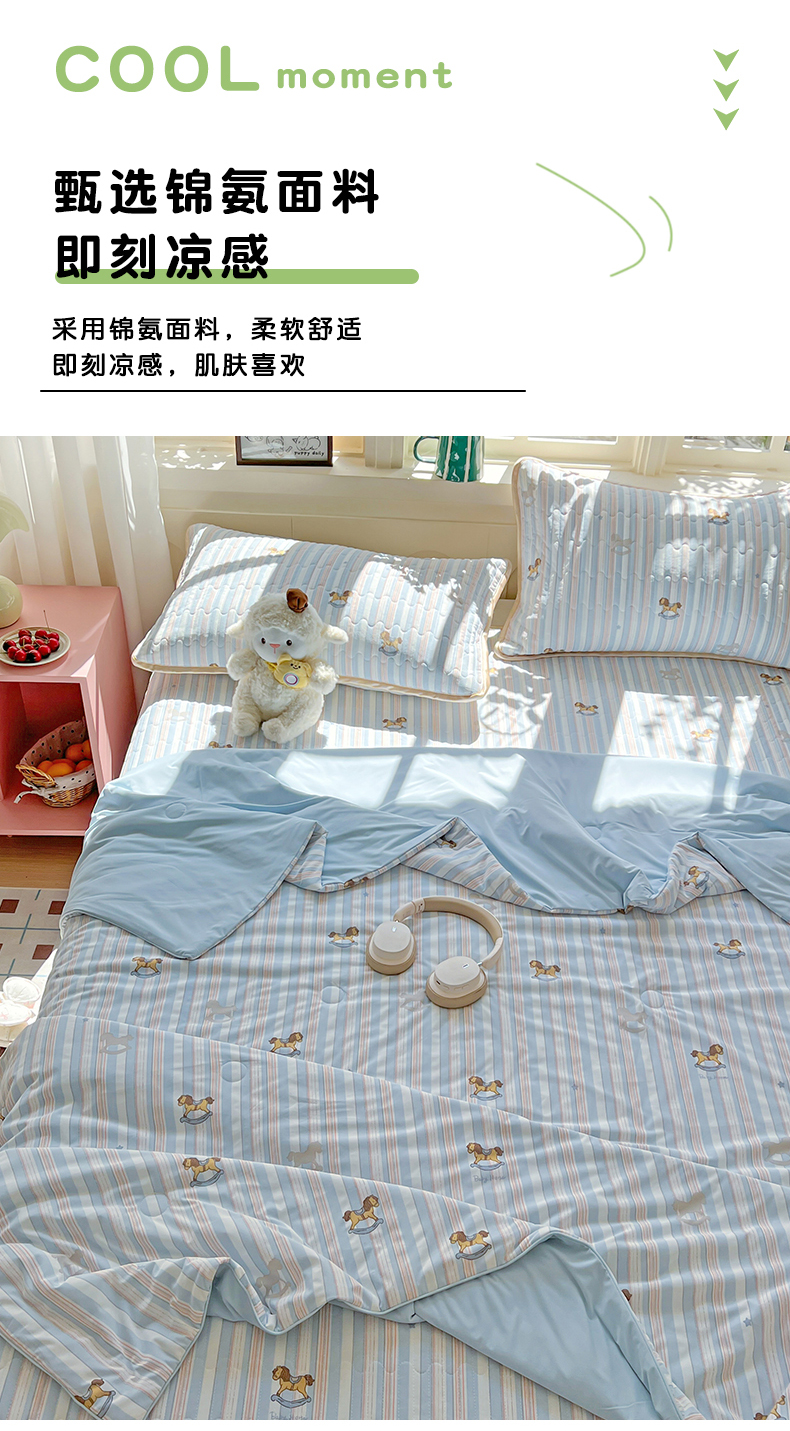 当前位置: 91家纺网 > 商品网购 > 床品套件 > 四件套 > 夏被四件套 > 卡普二店 2026新款A类锦氨凉感印花夏被四件套床盖凉席款--四件套 木马童话