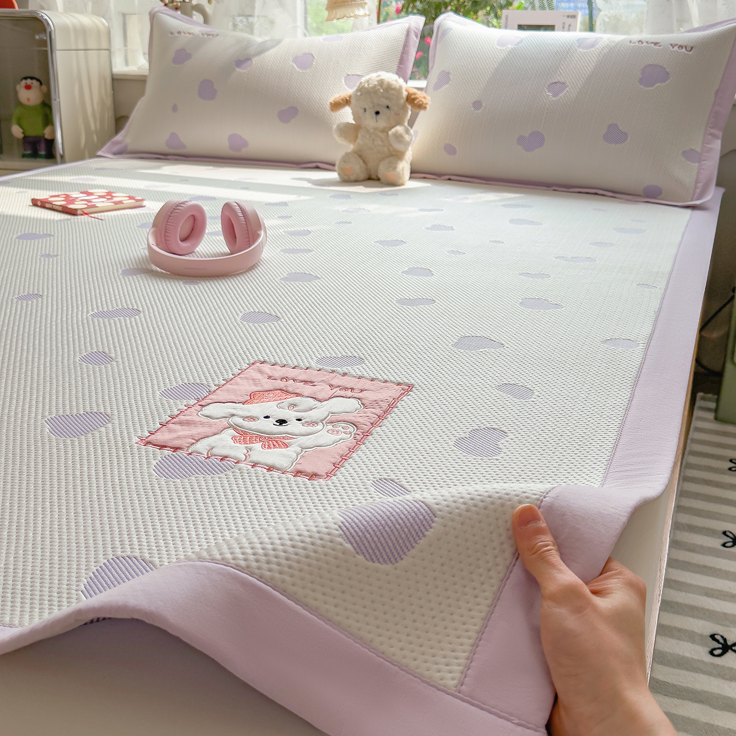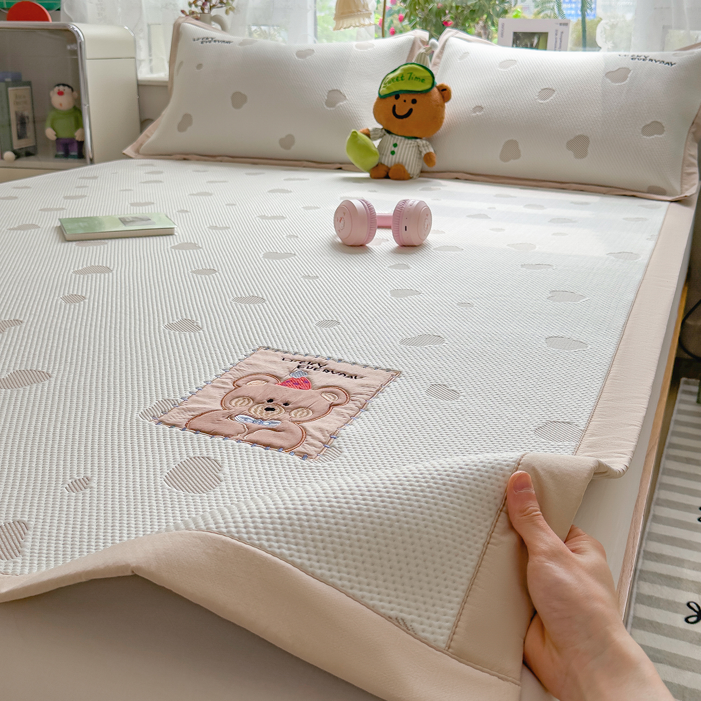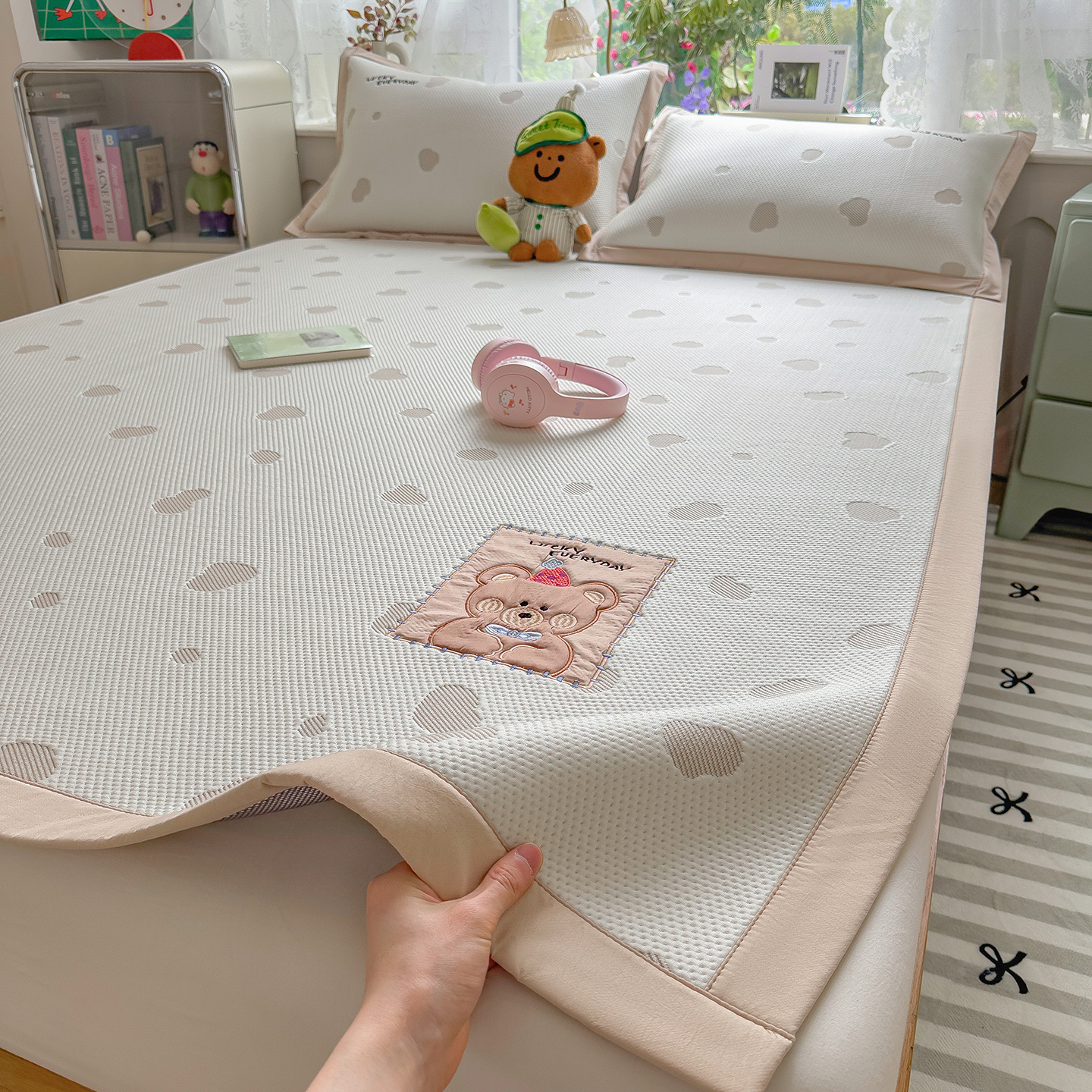 眠多宝(绒多宝) 2026新款萌趣治愈家系列凉豆豆床席三件套 凉豆豆贴布绣系列 幸运奶熊
