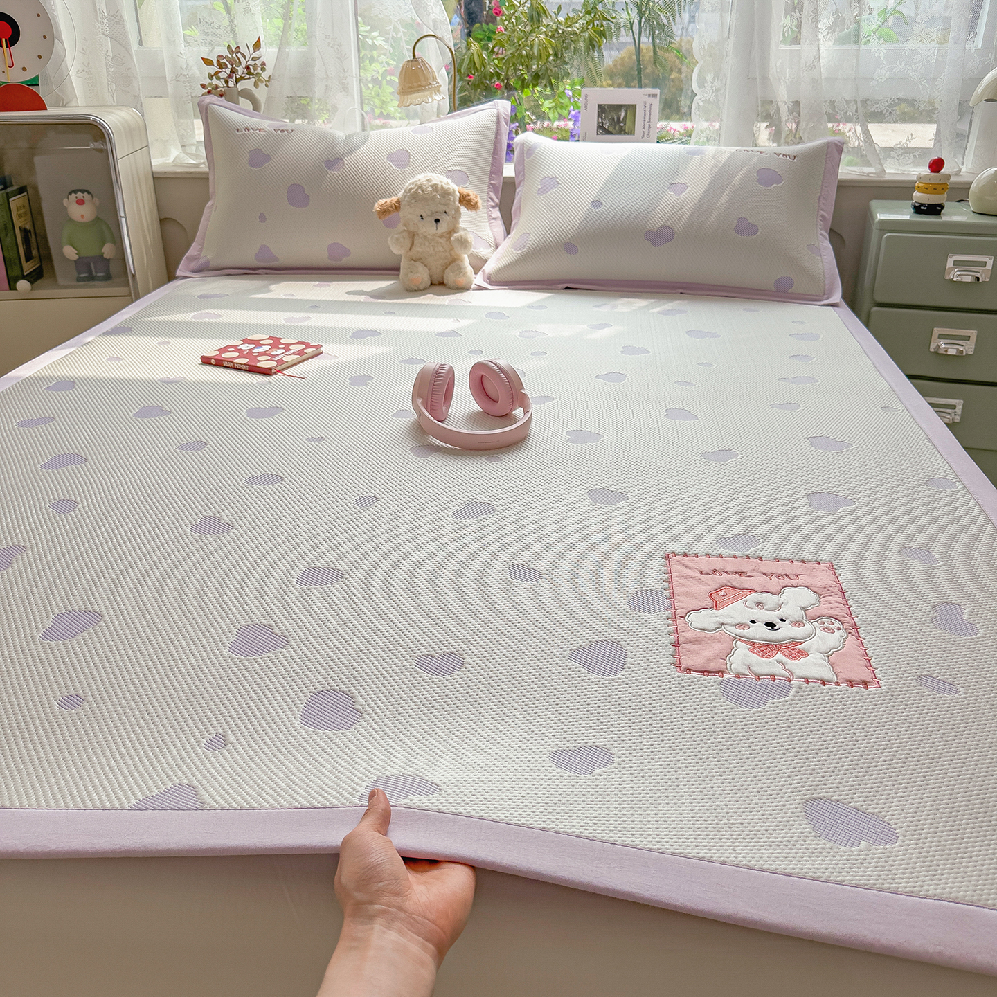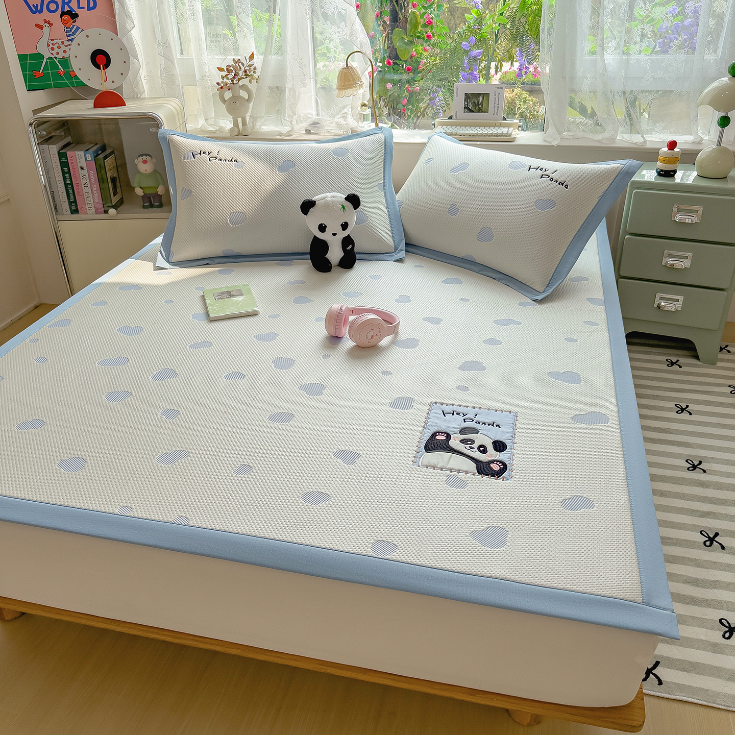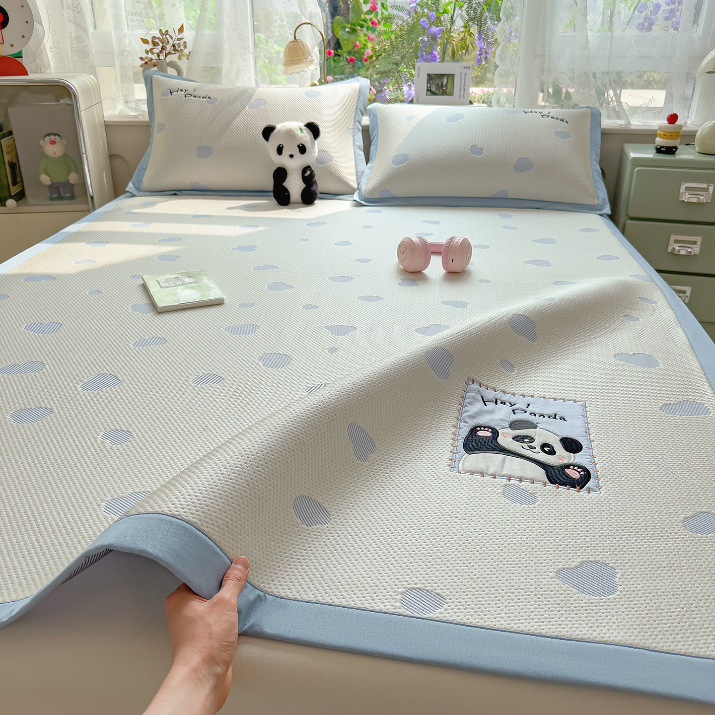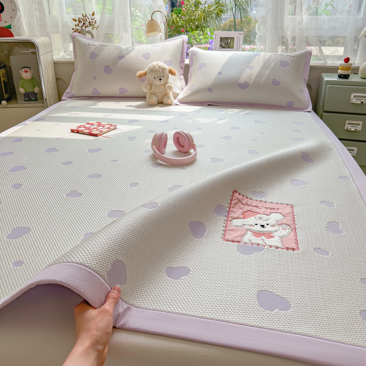 眠多宝(绒多宝) 2026新款萌趣治愈家系列凉豆豆床席三件套 凉豆豆贴布绣系列 幸运奶熊