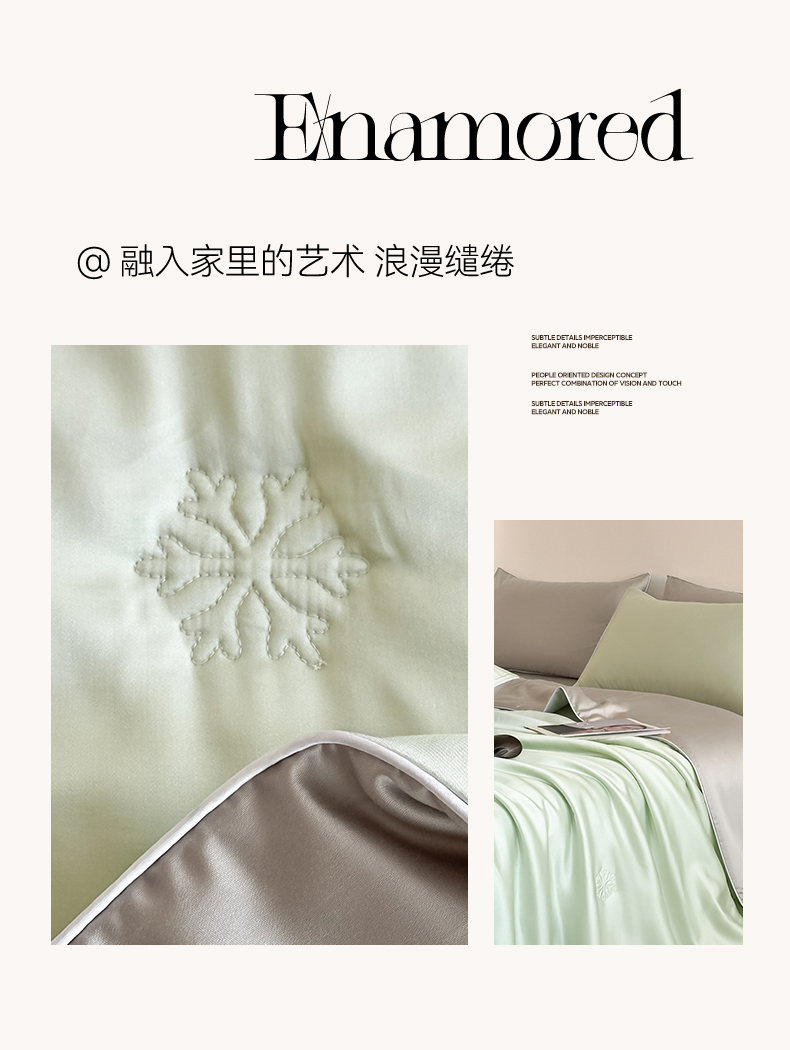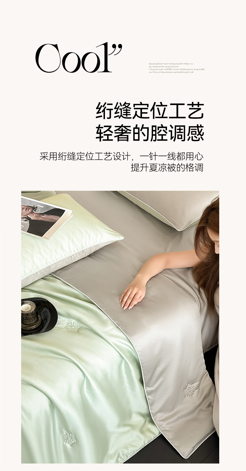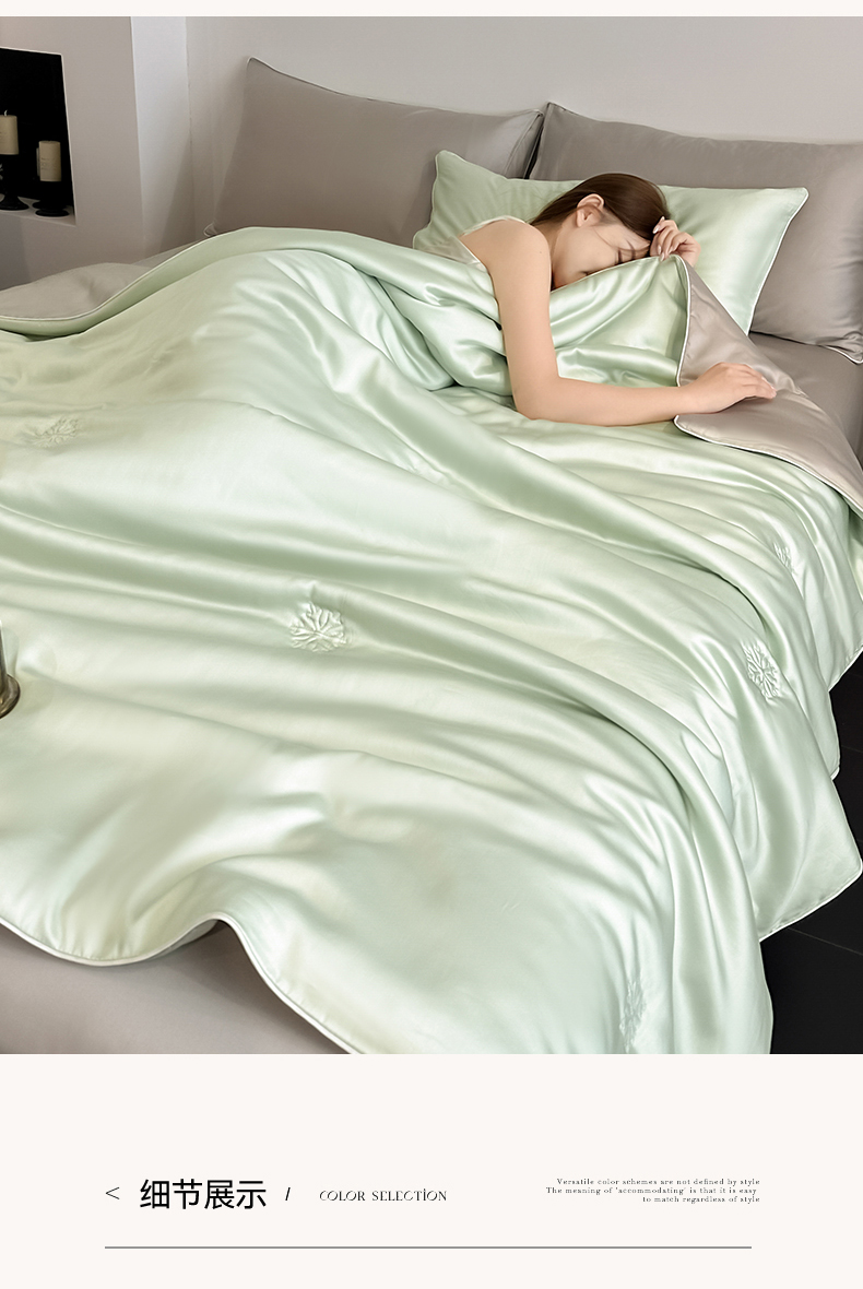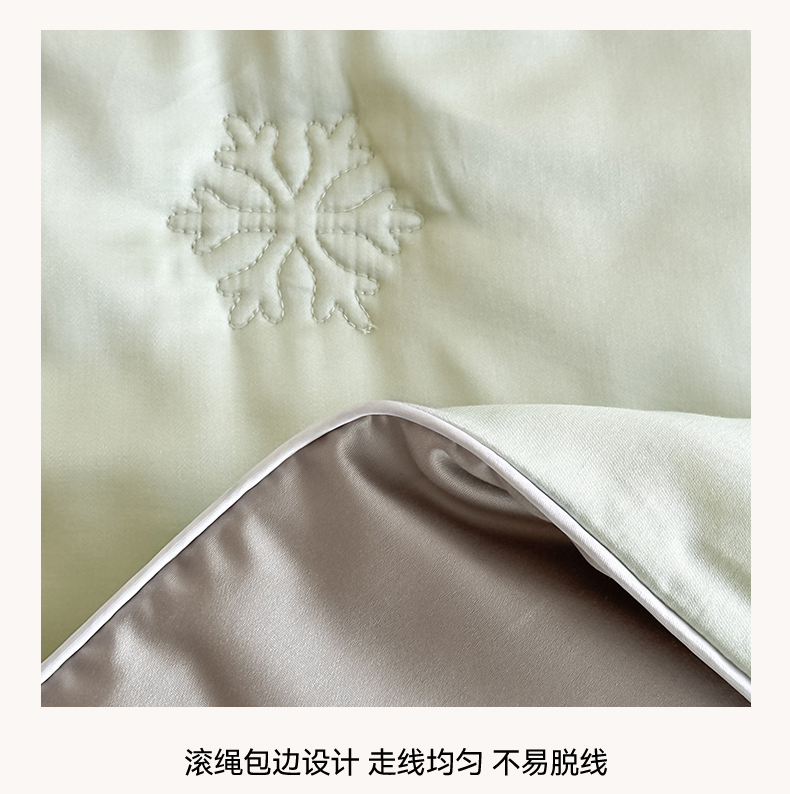 • 91家纺网 家纺一手货源 找家纺 无界 2026新款水洗真丝夏被-麻绳雪花绗缝-伊芙琳 伊芙琳 亚丁绿+冰川灰