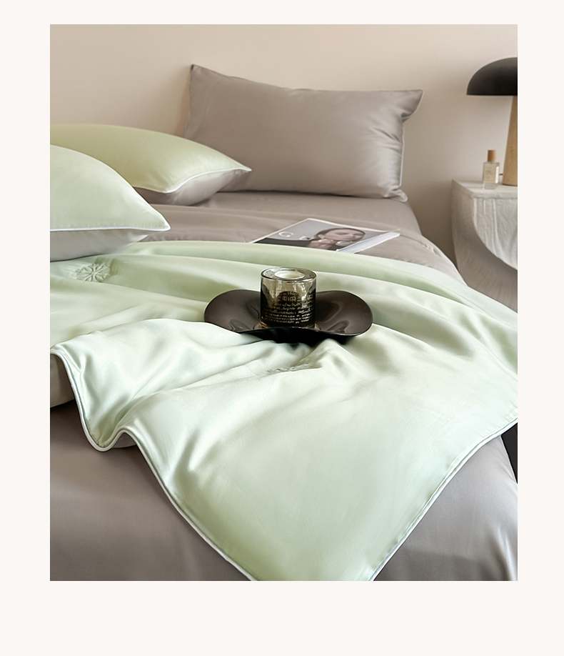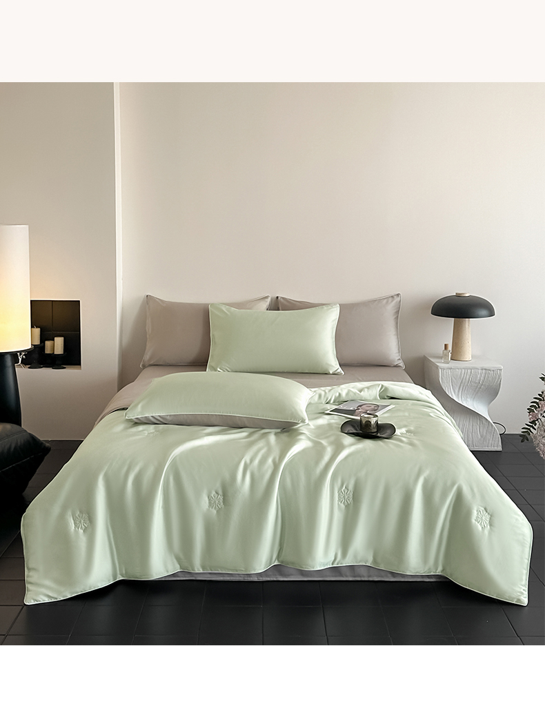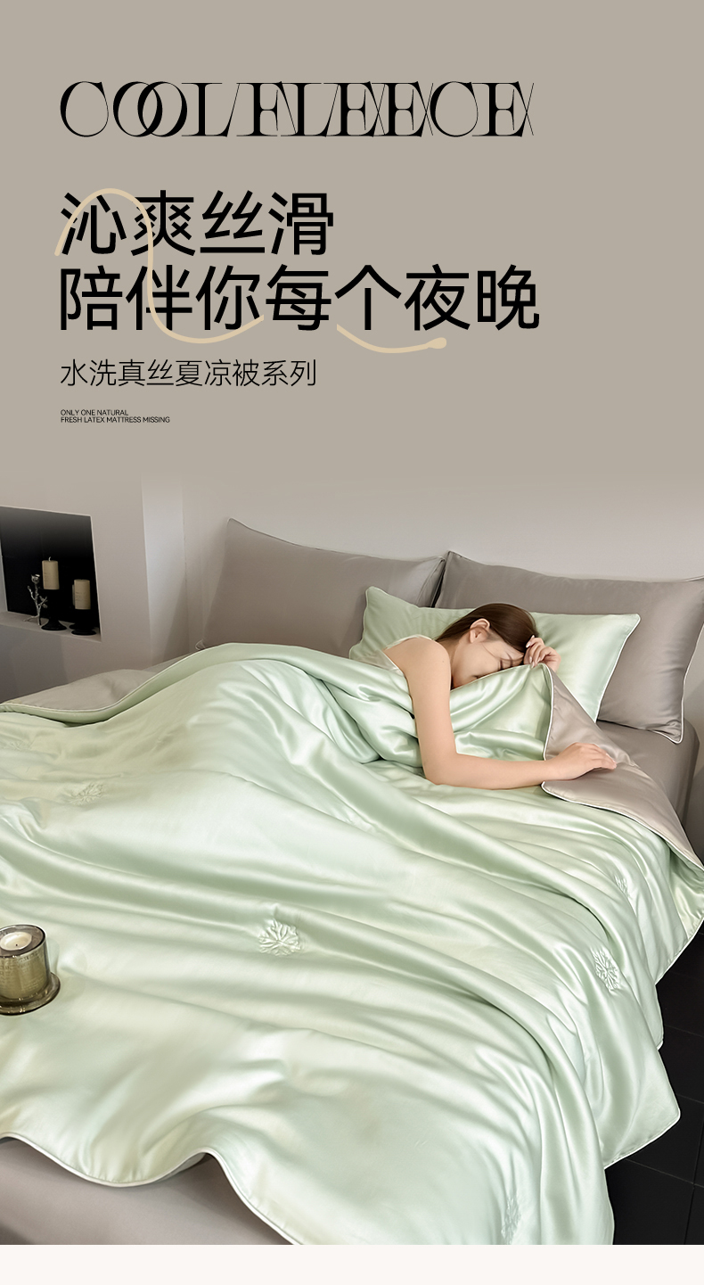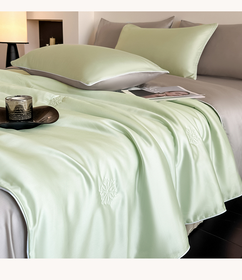 • 91家纺网 家纺一手货源 找家纺 无界 2026新款水洗真丝夏被-麻绳雪花绗缝-伊芙琳 伊芙琳 亚丁绿+冰川灰