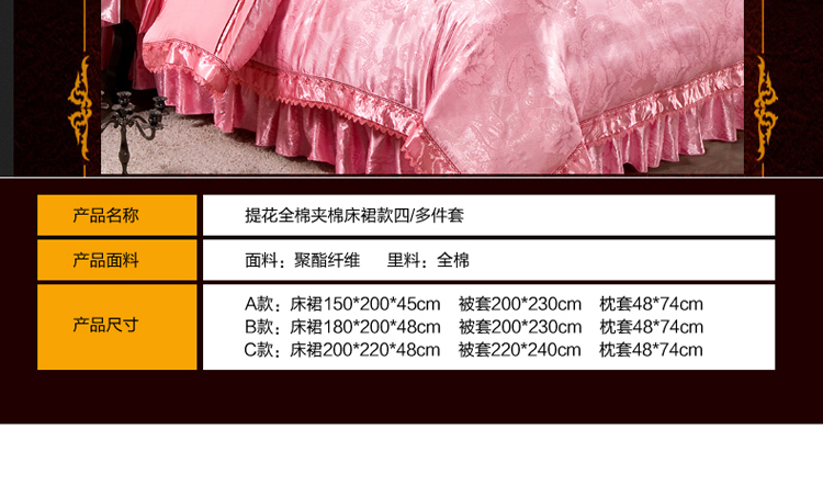 商品名称:兴美佳家纺 提花全棉夹棉床裙四件套 盛世花舞