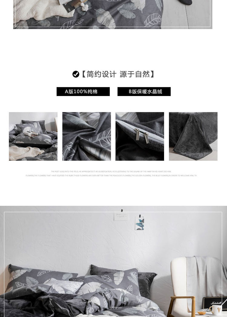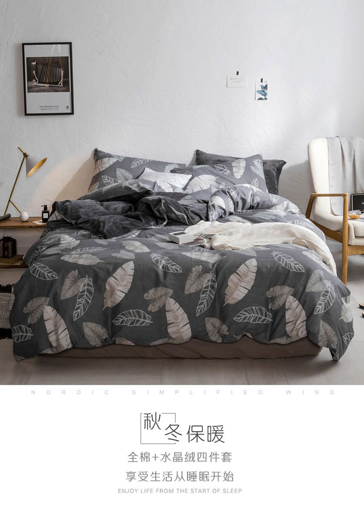 梦家居韩国简约纯棉水晶绒四件套A版全棉B版水晶绒四件套