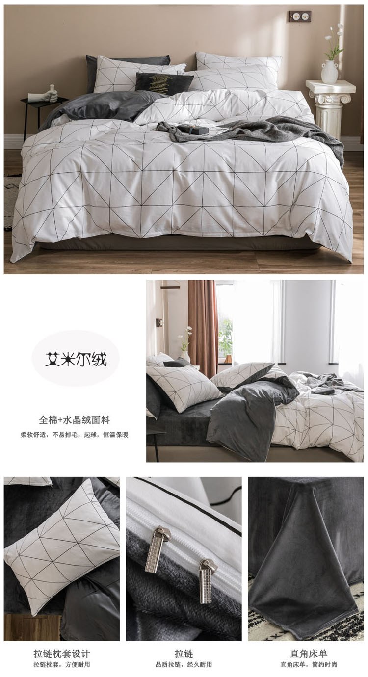 商品名称:梦家居 2019新款A棉B绒四件套 艾米尔绒