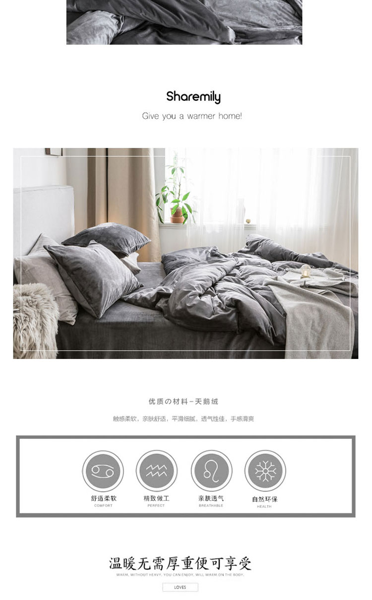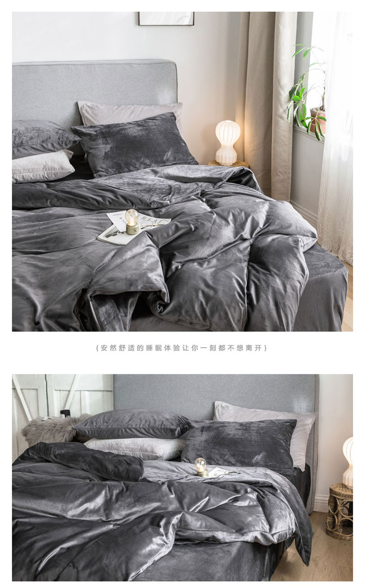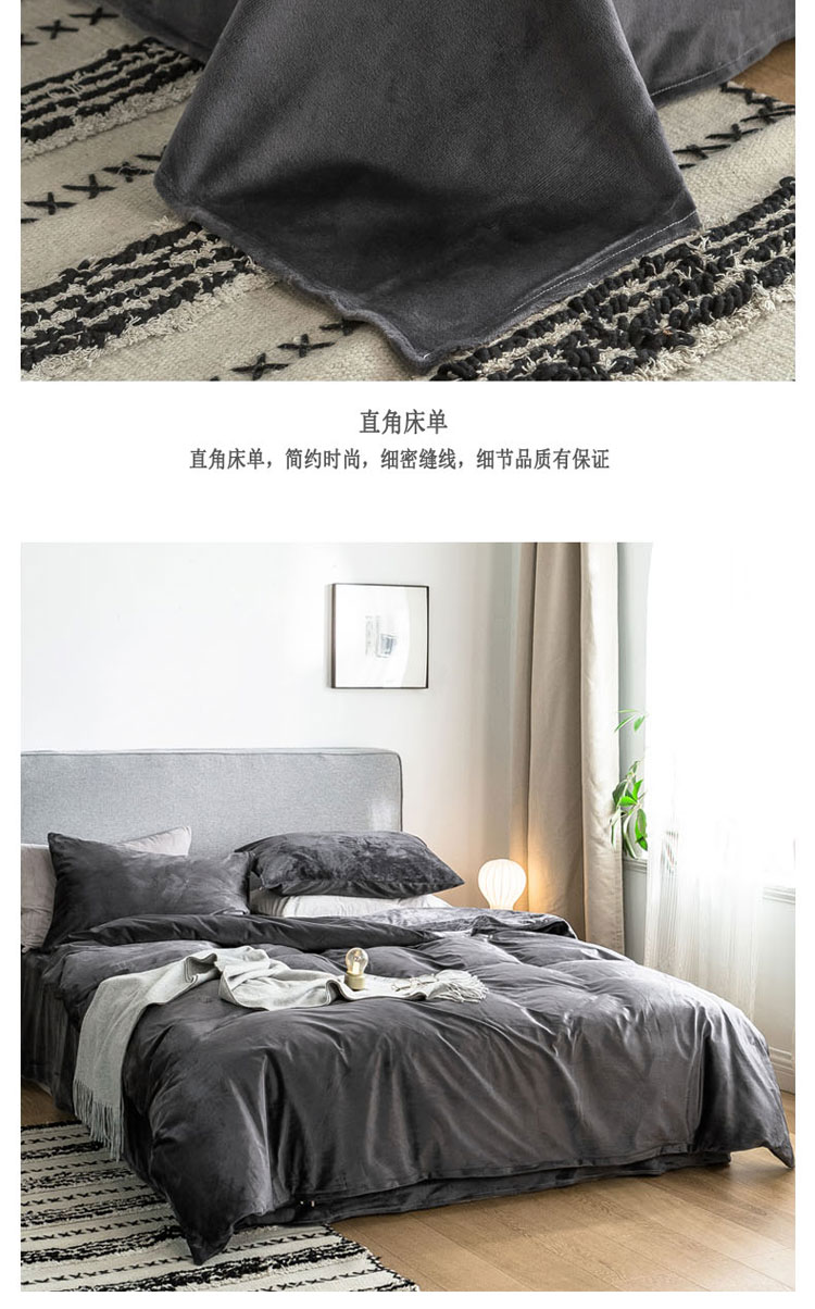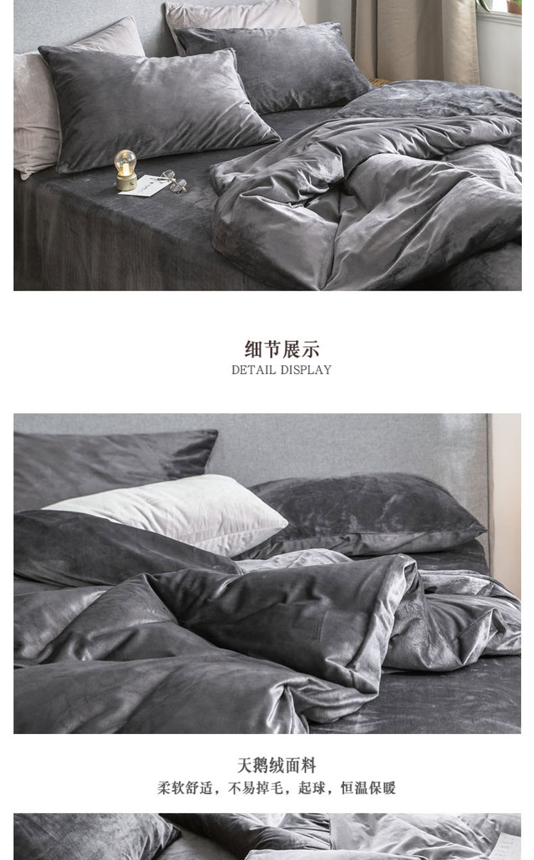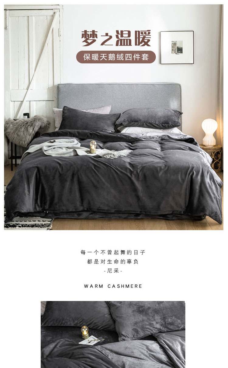 商品名称:梦家居 2019韩国简约素色天鹅绒四件套 深灰色