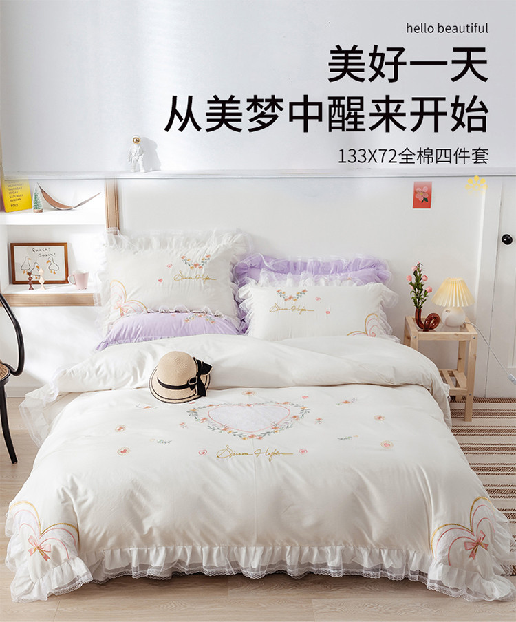 总迪欧芙 2023新款纯棉全棉喷气13372公主风星月系列四件套,白色,粉色,黄色,紫色
