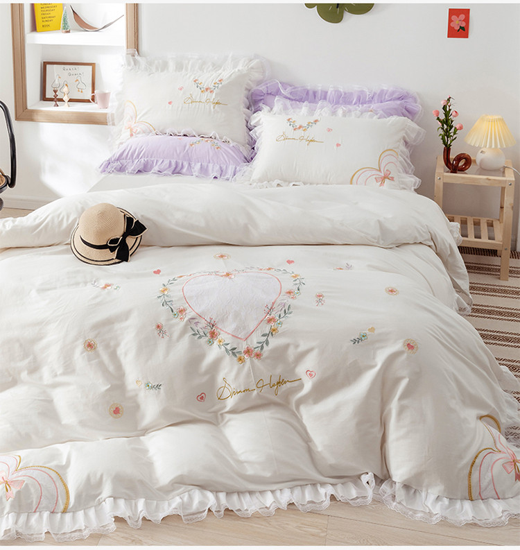 (总)迪欧芙 2024春季纯棉13372公主风四件套刺绣花边四件套爱的结语系列,爱的结语-白,爱的结语-粉,爱的结语-蓝