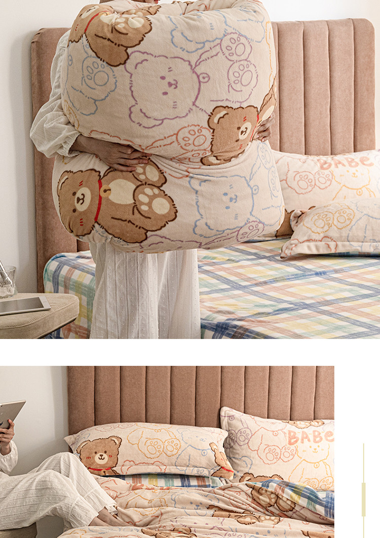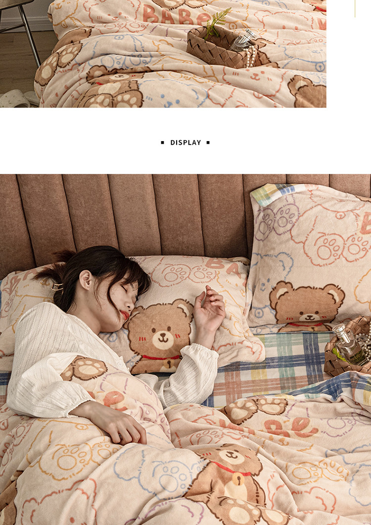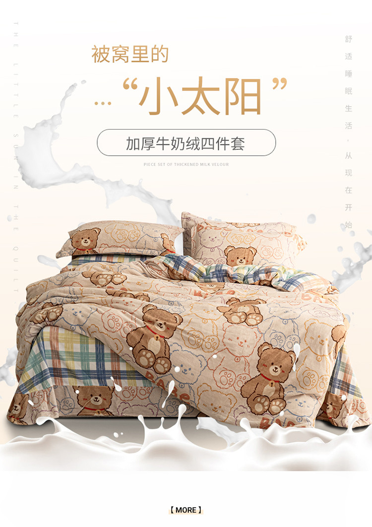 佳梦家纺 2021新款牛奶绒印花四件套 多彩熊