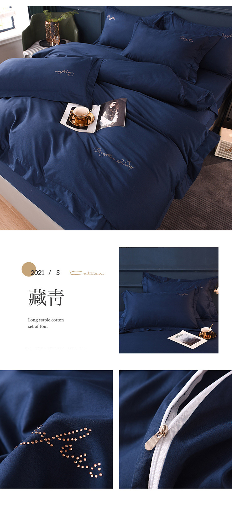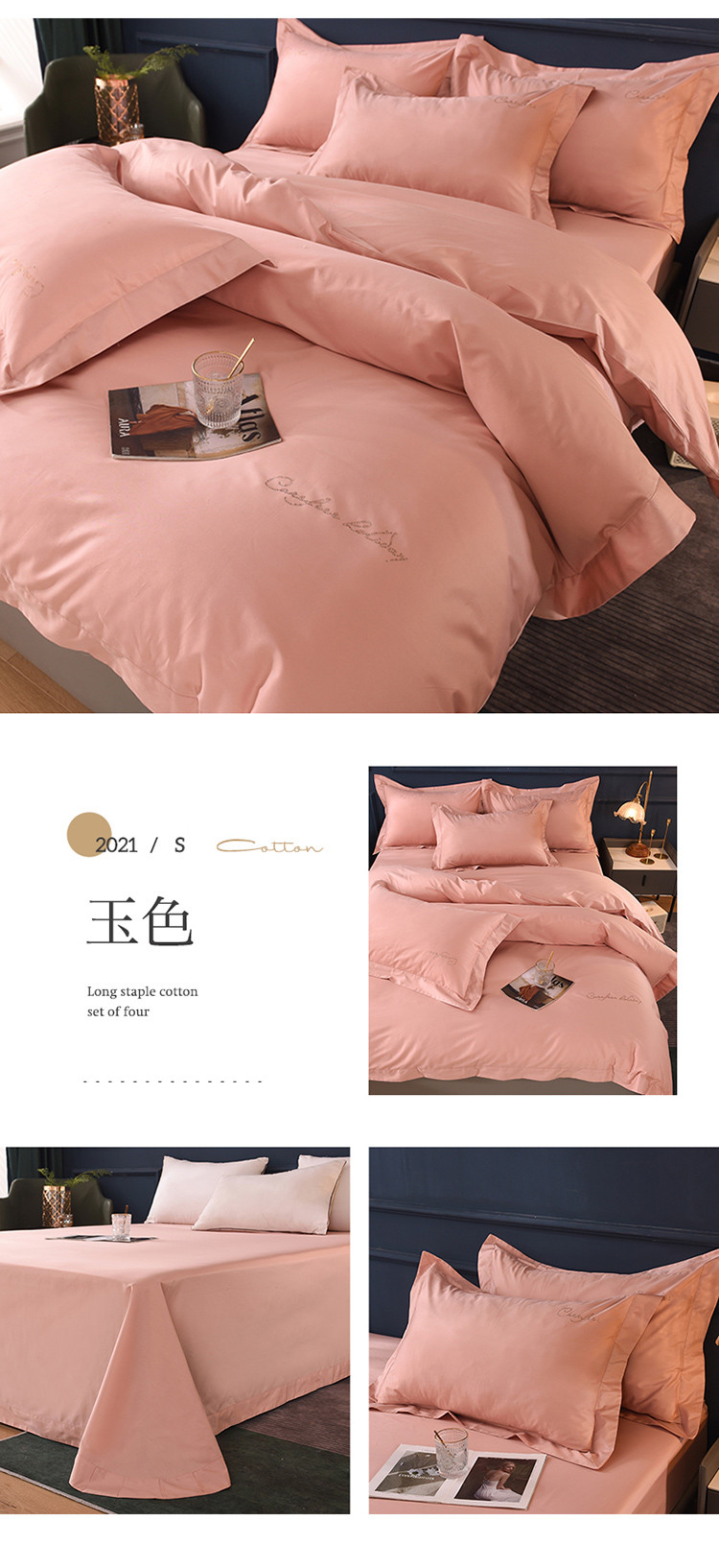 (总)甜之梦2025新款13374经典工艺款纯色长绒棉四件套