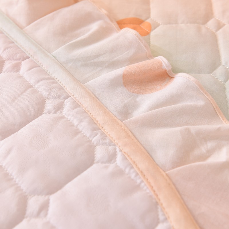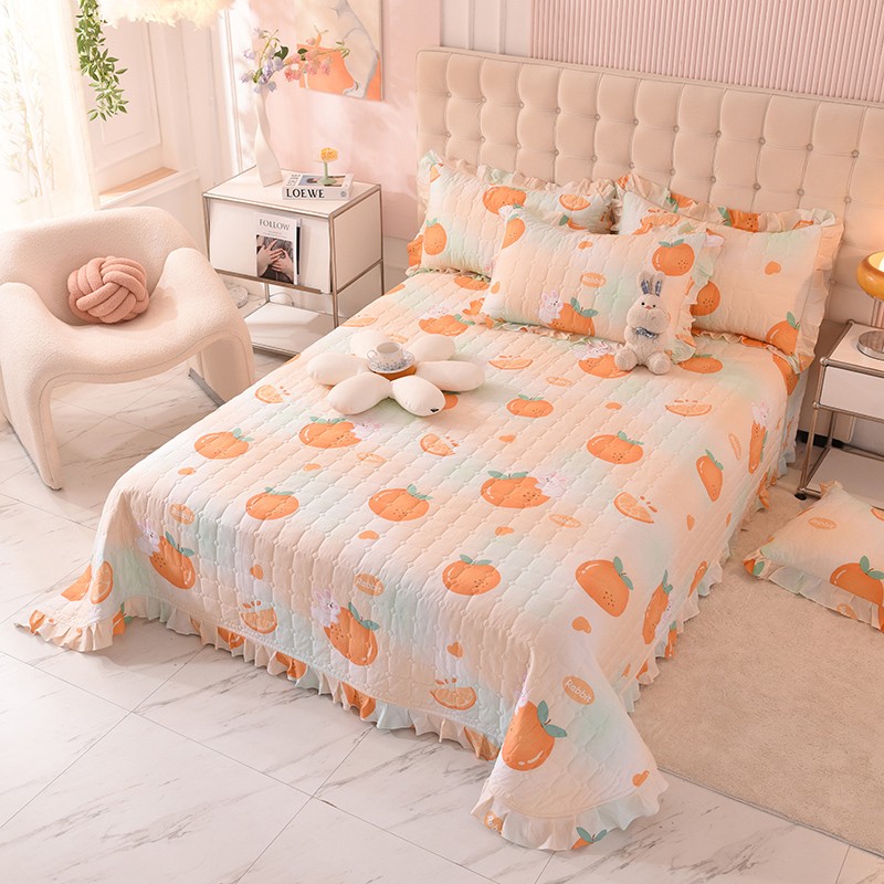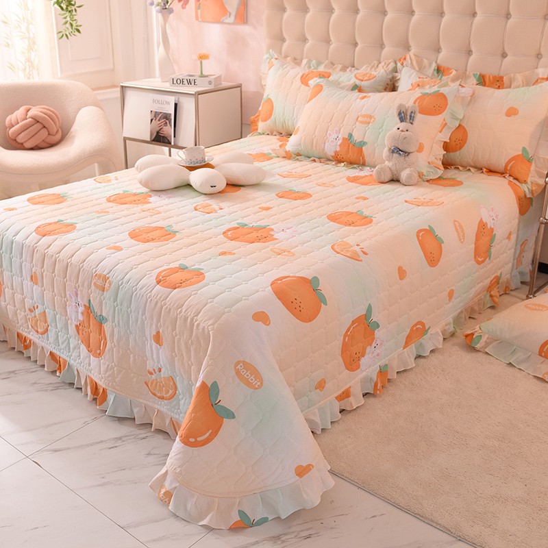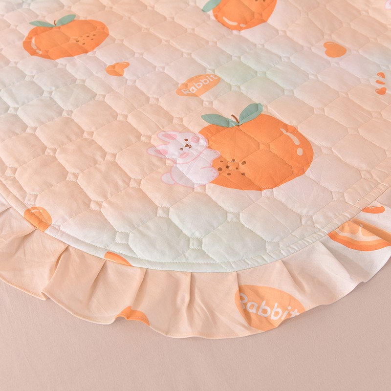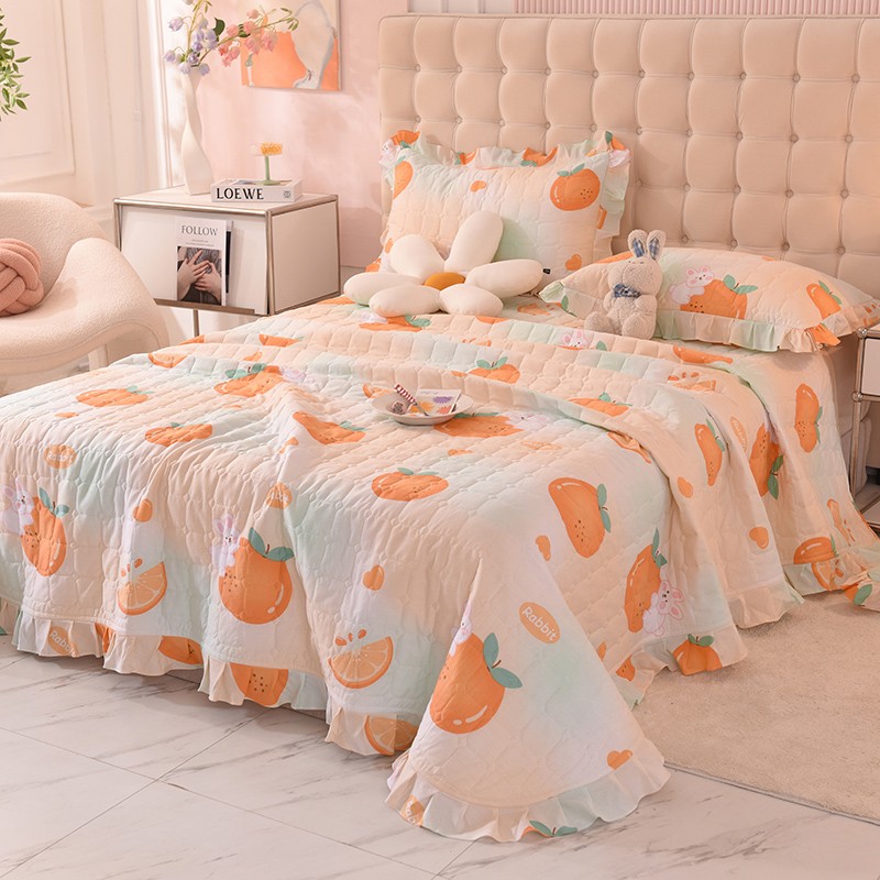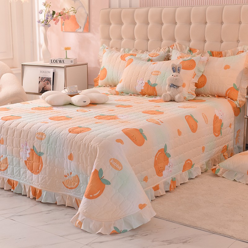 甜之梦家纺 2025新款全棉夹棉防滑抗菌花边款床盖 甜橙小兔