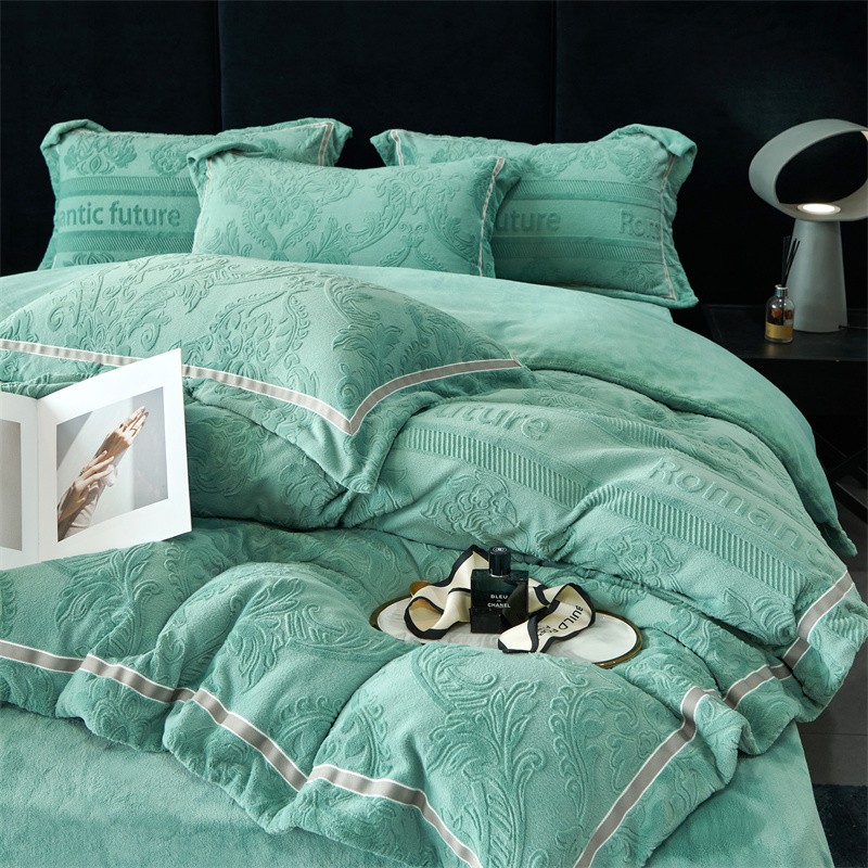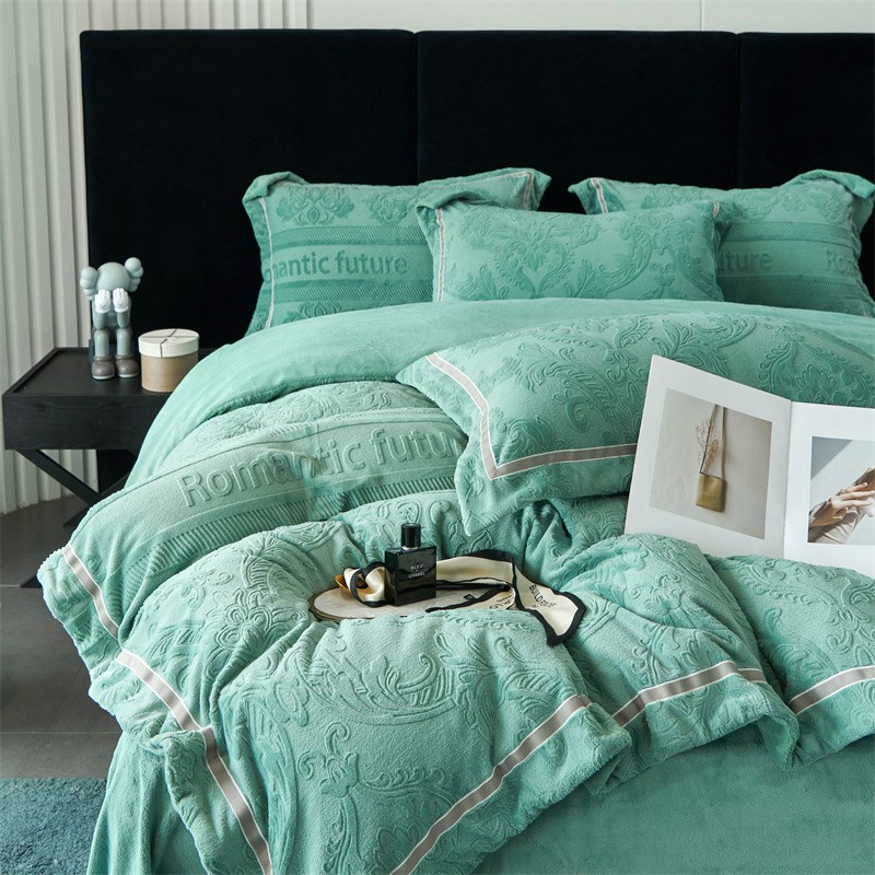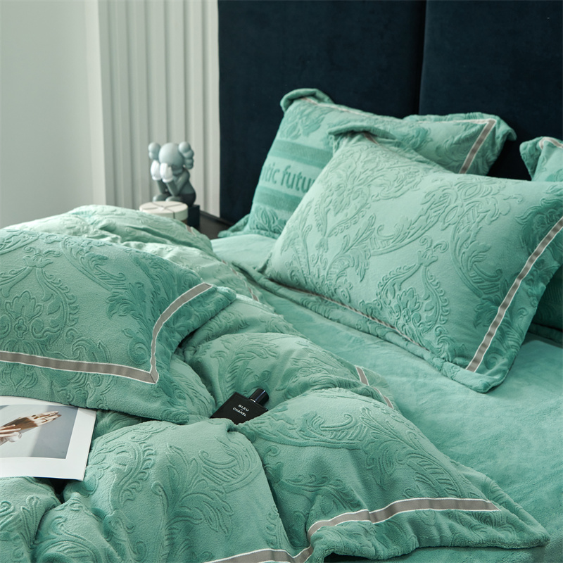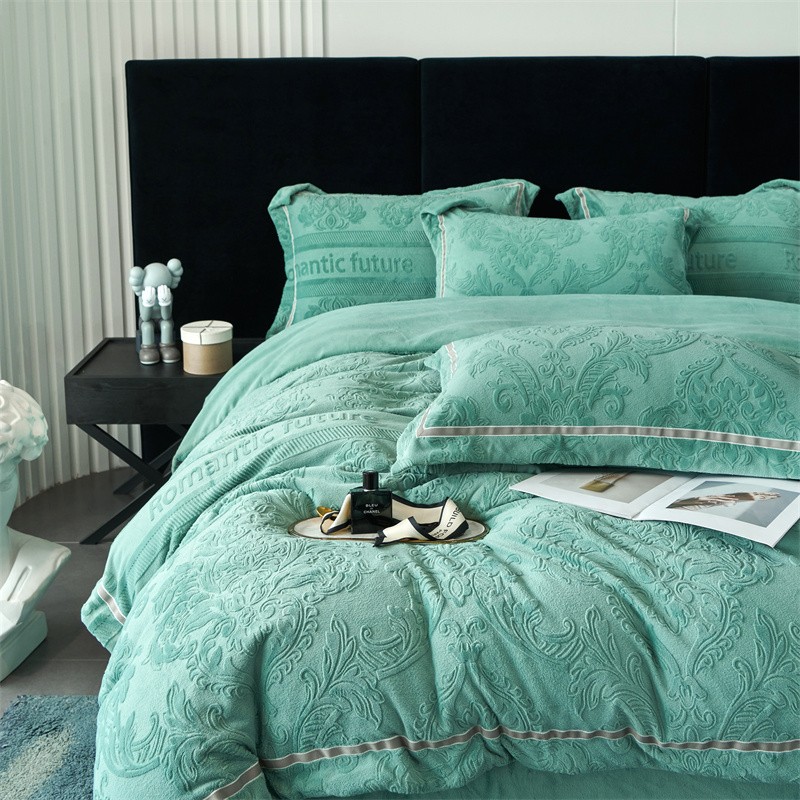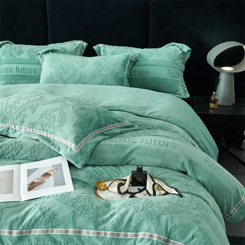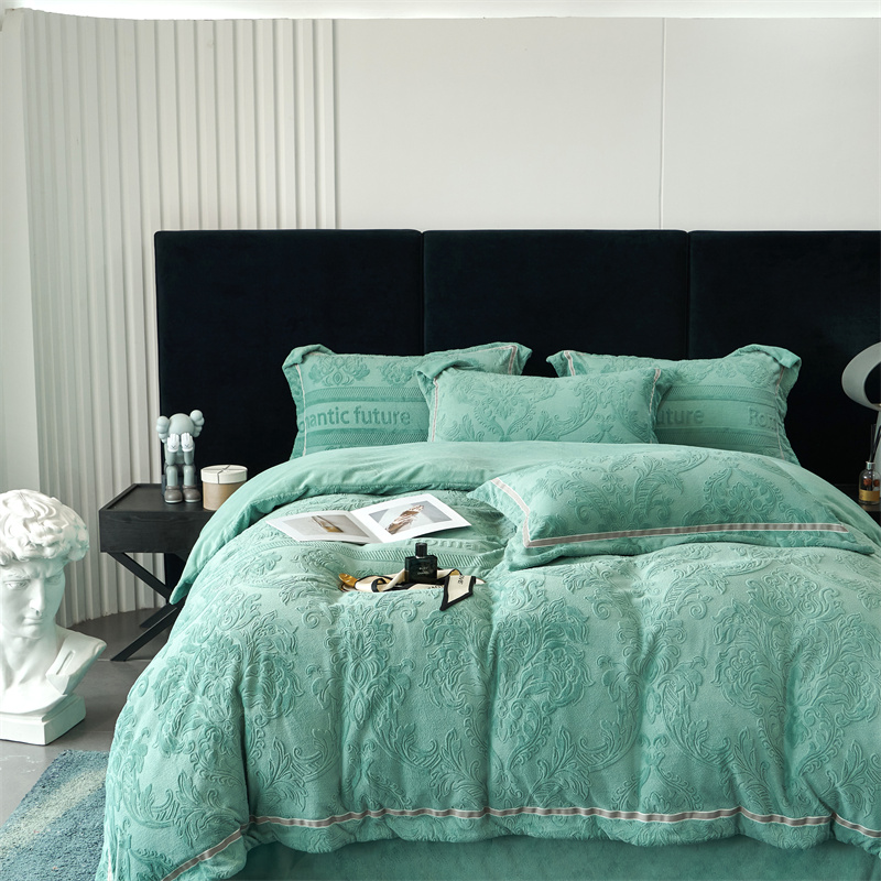 商品名称:榻尚家居 2023新款260克全消光高端浮雕绒四件套 瑞丽 湖绿