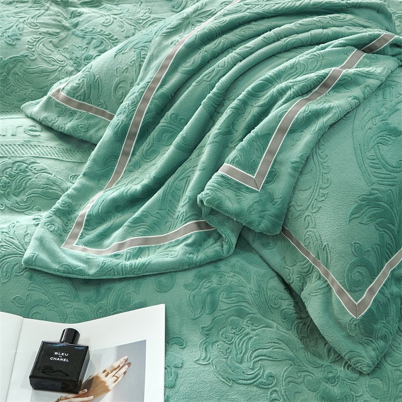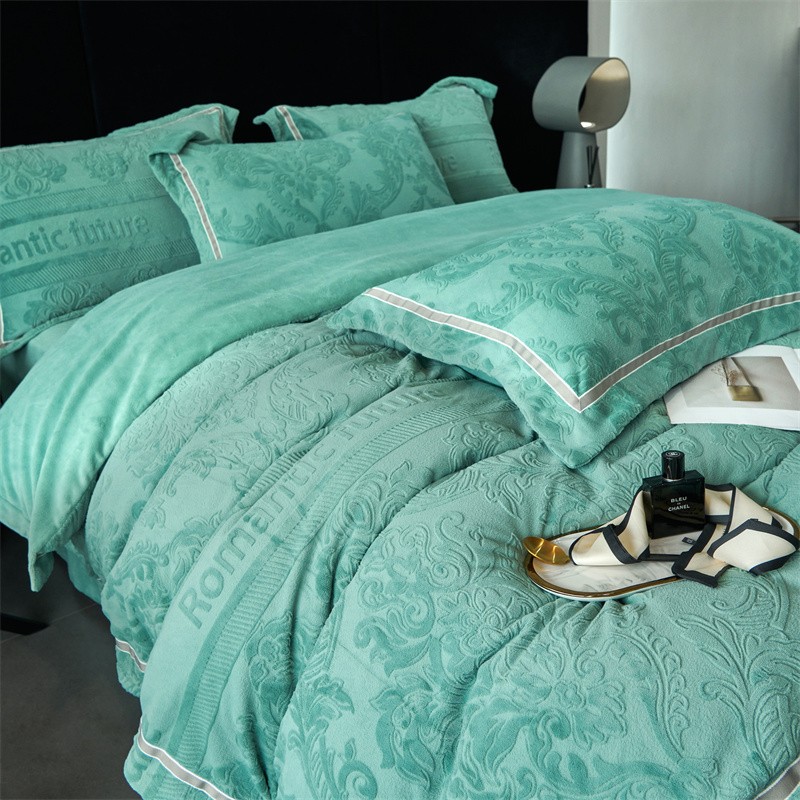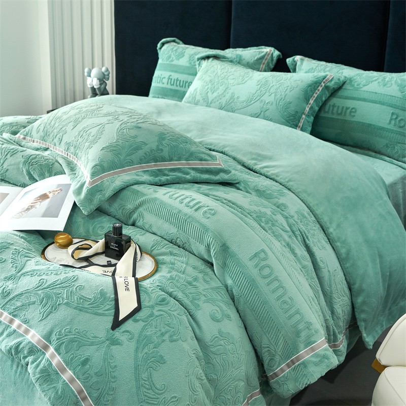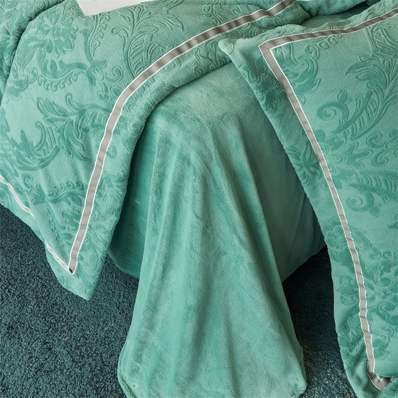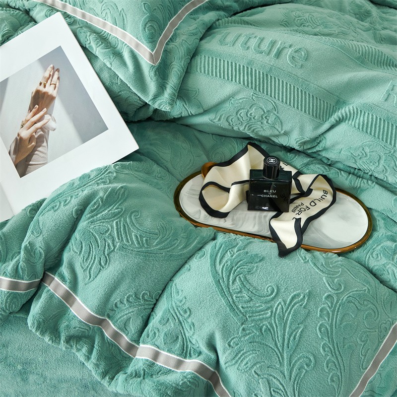 榻尚家居 2023新款260克全消光高端浮雕绒四件套 瑞丽 湖绿