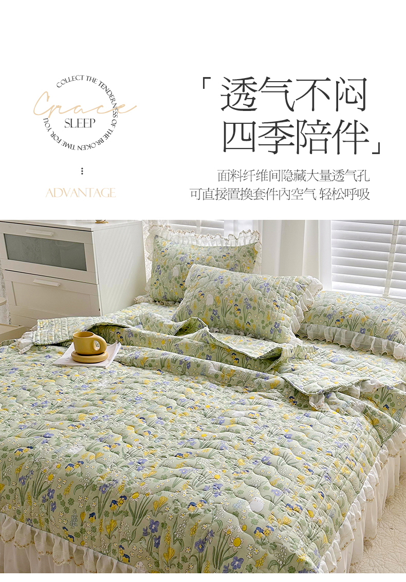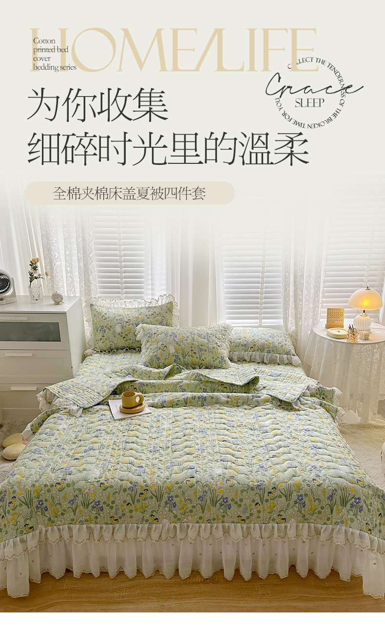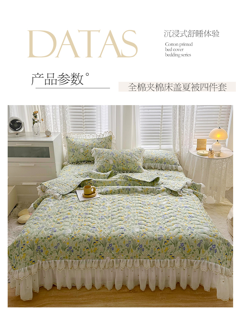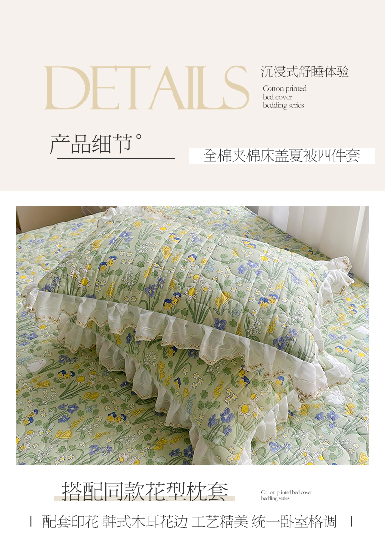 当前位置: 91家纺网 > 商品网购 > 床品套件 > 四件套 > 夏被四件套 > 宜凡家纺 全棉床盖夏被四件套 蔷薇织梦