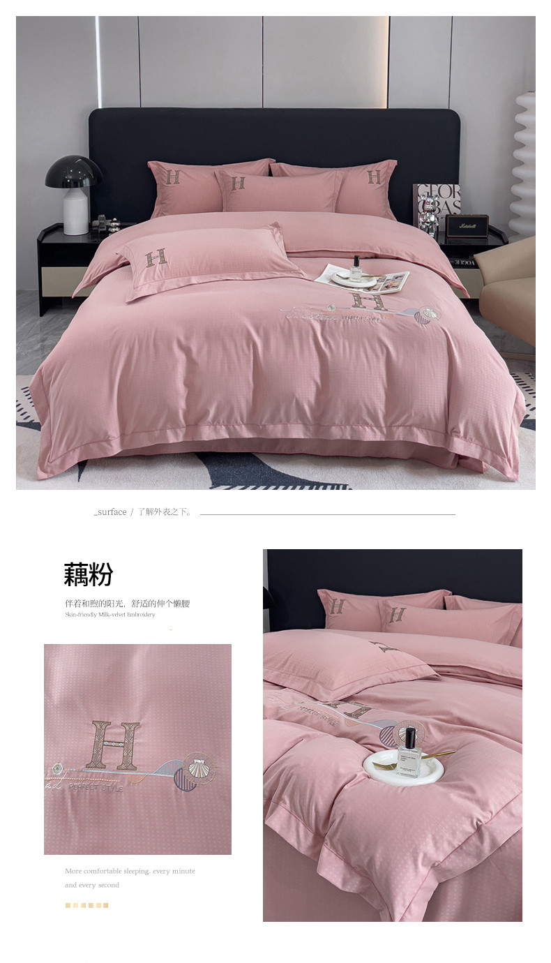 商品名称:靓生活 2023新款欧曼系列锦棉提花刺绣四件套 欧曼-藕粉