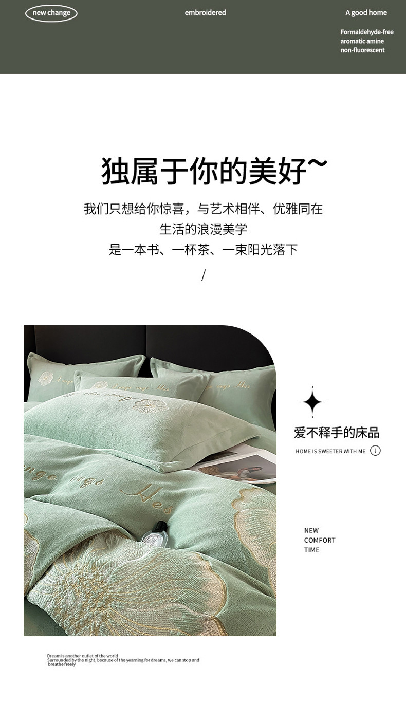 当前位置: 91家纺网 > 商品网购 > 床品套件 > 四件套 > 牛奶绒四件套 > 你好美丽 2025新款200克牛奶绒刺绣花卉3系列四件套 花之语绿