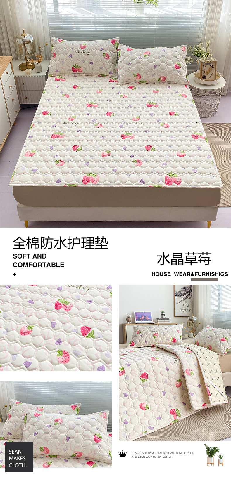 恋绒家纺 2025新款A类纯棉(隔尿 防水)抗菌软床垫 水晶草莓