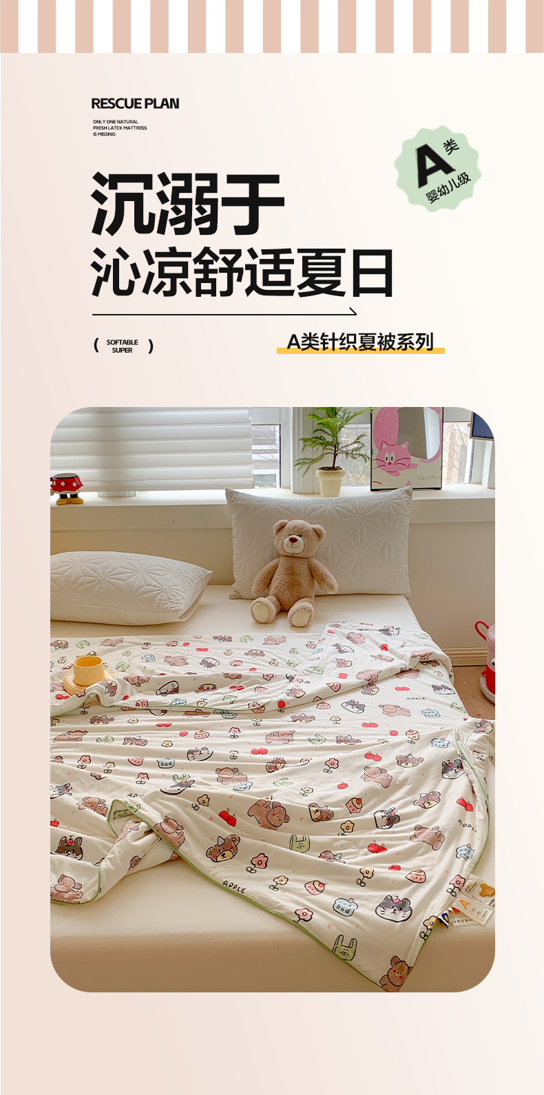 澳萝拉 2024新款A类针织印花夏被 萌宠甜心