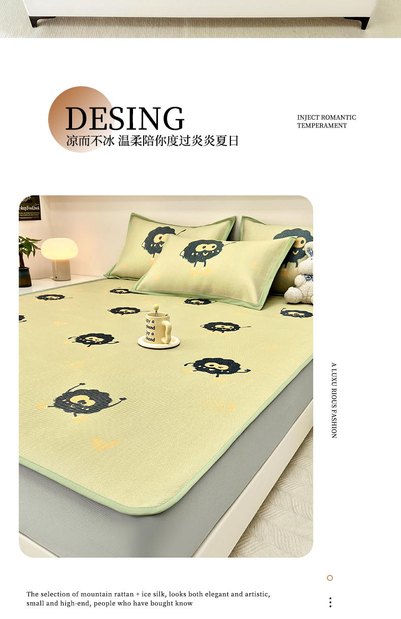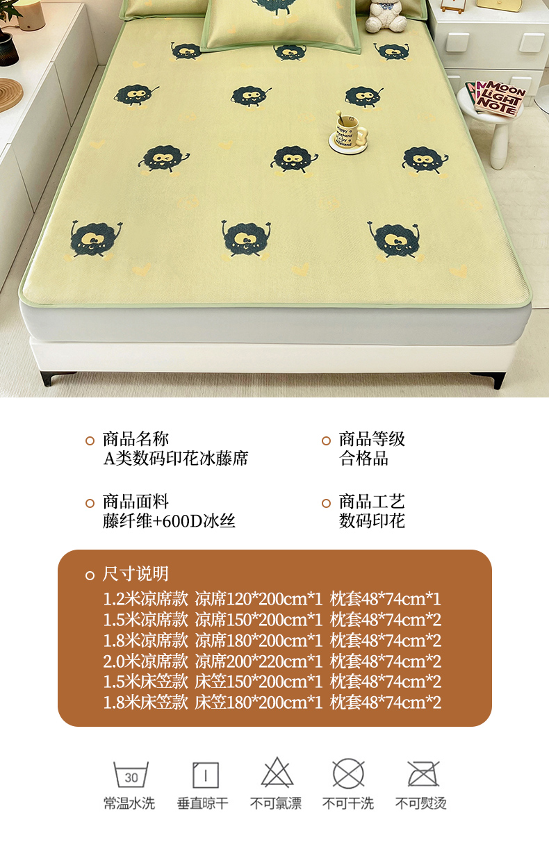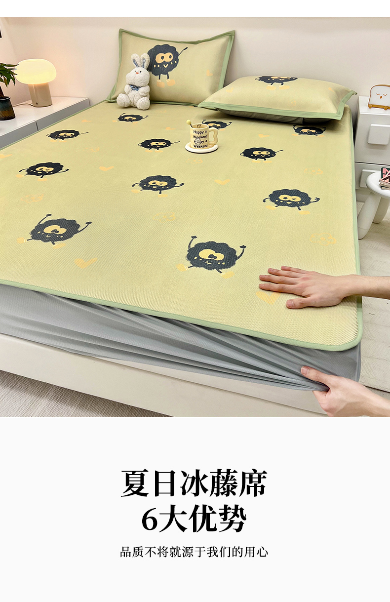 当前位置: 91家纺网 > 商品网购 > 床上用品 > 凉席 > 藤席 > 全季家居 2024新款5A抗菌小清新数码印花冰藤席 小煤球(床笠款)